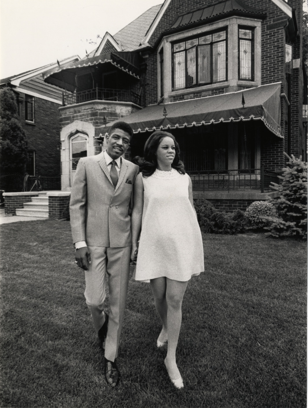 Favorite this☆ Florence Ballard and Thomas Chapman Description: View of singer Florence Ballard and husband Thomas Chapman posing in front of brick house. Stamped on back: "Detroit Free Press, Ira Rosenberg." Handwritten on back: "Florence Ballard." Details Resource ID: hk000255 Creator: Rosenberg, Ira Subject: Ballard, Florence, 1943-1976 Chapman, Thomas African American women singers Photographers--Michigan--Detroit Photographic prints Date Issued: Unknown year Format: 1 photographic print ; 9.5 x 7 in. Member of: E. Azalia Hackley Collection Filing Location: Biography--Ballard, Florence Rights: Physical rights are retained by DPL. Copyright is retained in accordance with U.S. copyright laws.