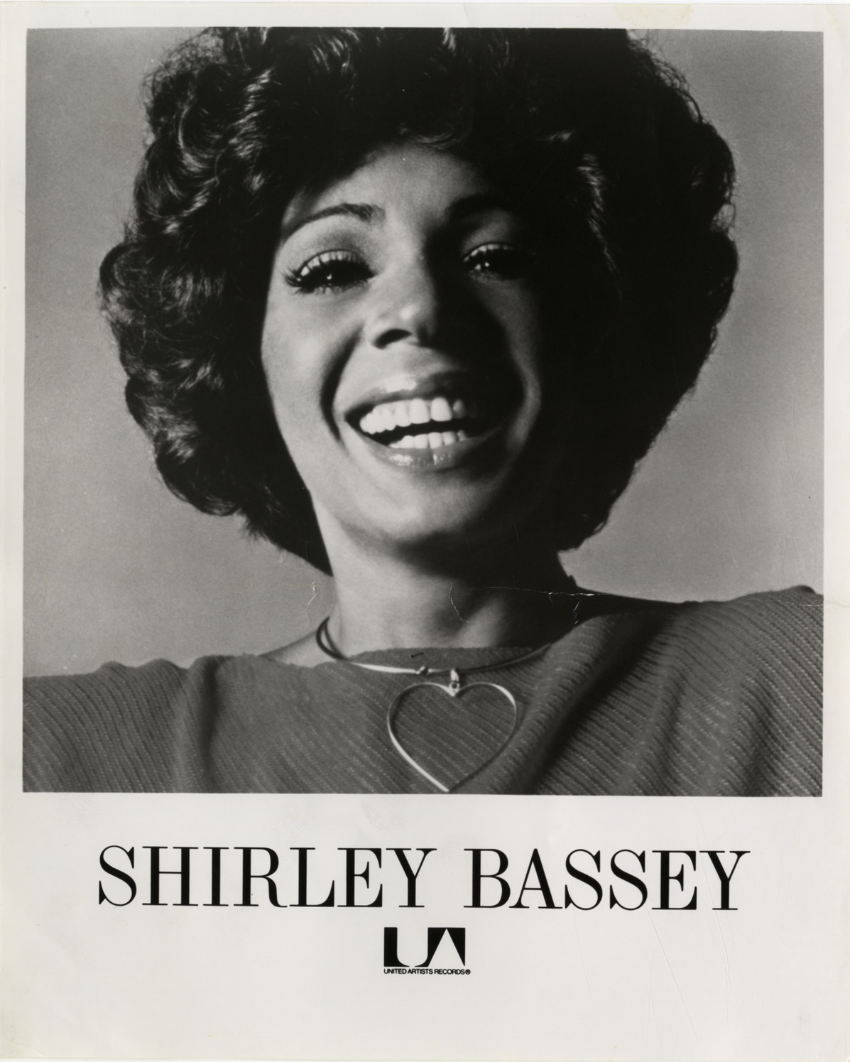 Portrait of singer Shirley Bassey. Printed on front: "Shirley Bassey. United Artists Records."