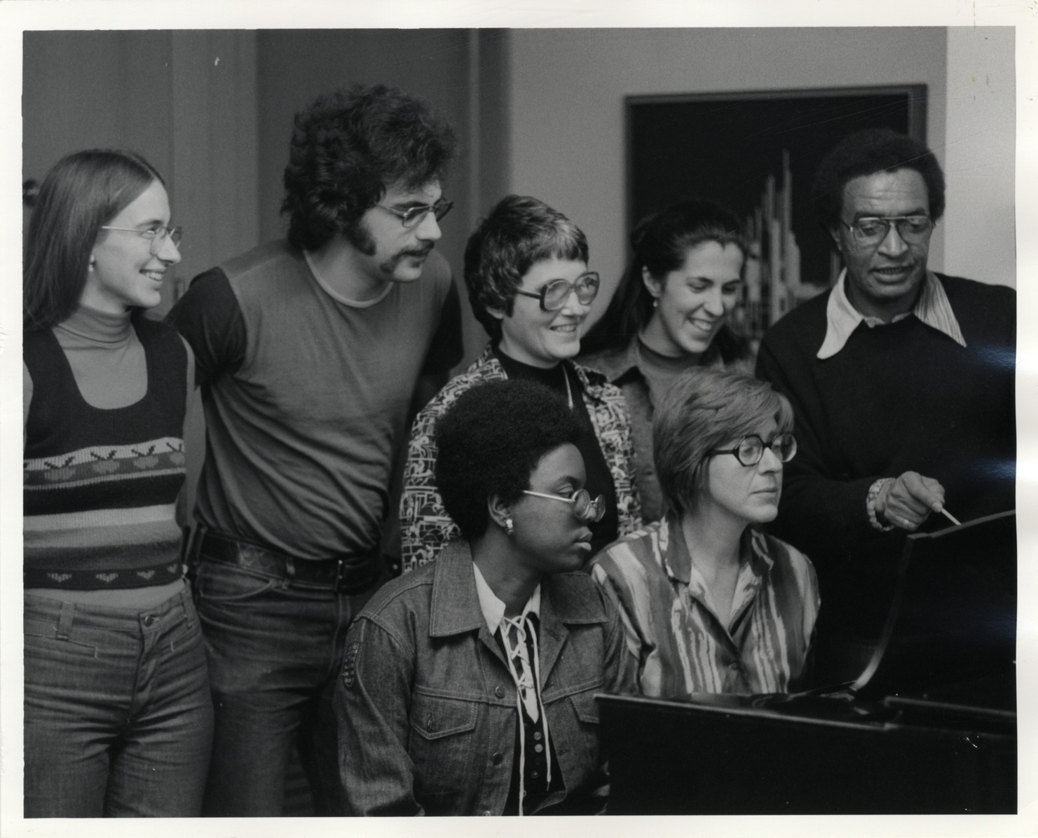Favorite this☆ Frederick Bellinger and students Description: Portrait of singer and conductor Frederick Bellinger standing at piano with group of students. Handwritten on back: "Frederick Bellinger." Details Resource ID: hk000305 Subject: Bellinger, Frederick African American singers African American conductors (Music) Music students Photographic prints Date Issued: Unknown year Format: 1 photographic print ; 8 x 10 in. Member of: E. Azalia Hackley Collection Filing Location: Biography--Bellinger, Frederick Rights: Physical rights are retained by DPL. Copyright is retained in accordance with U.S. copyright laws.