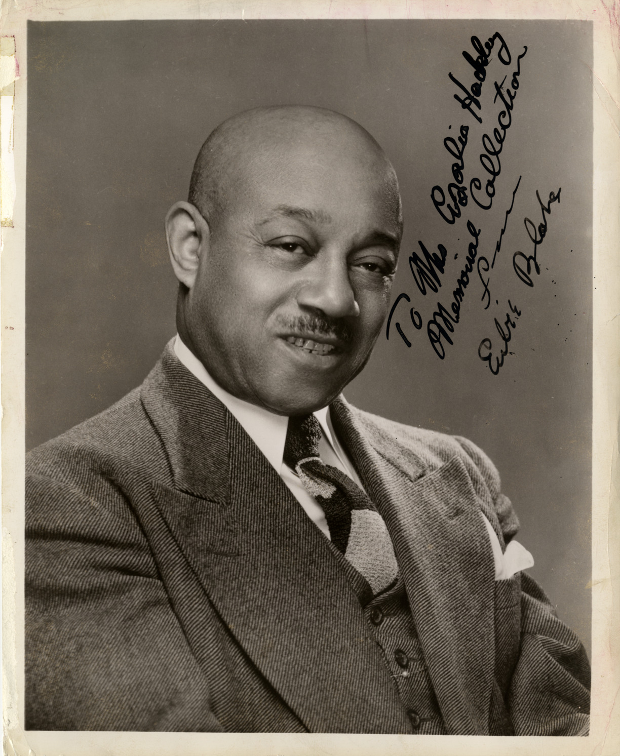 Favorite this☆ Eubie Blake Description: Portrait of pianist and composer Eubie Blake. Autographed on front: "To the Azalia Hackley Memorial Collection from Eubie Blake." Details Resource ID: hk000317 Subject: Blake, Eubie, 1887-1983 Blake, Eubie, 1887-1983--Autographs African American composers African American pianists Photographic prints Date Issued: Unknown year Format: 1 photographic print ; 10 x 8 in. Member of: E. Azalia Hackley Collection Filing Location: Biography--Blake, Eubie Rights: Physical rights are retained by DPL. Copyright is retained in accordance with U.S. copyright laws.