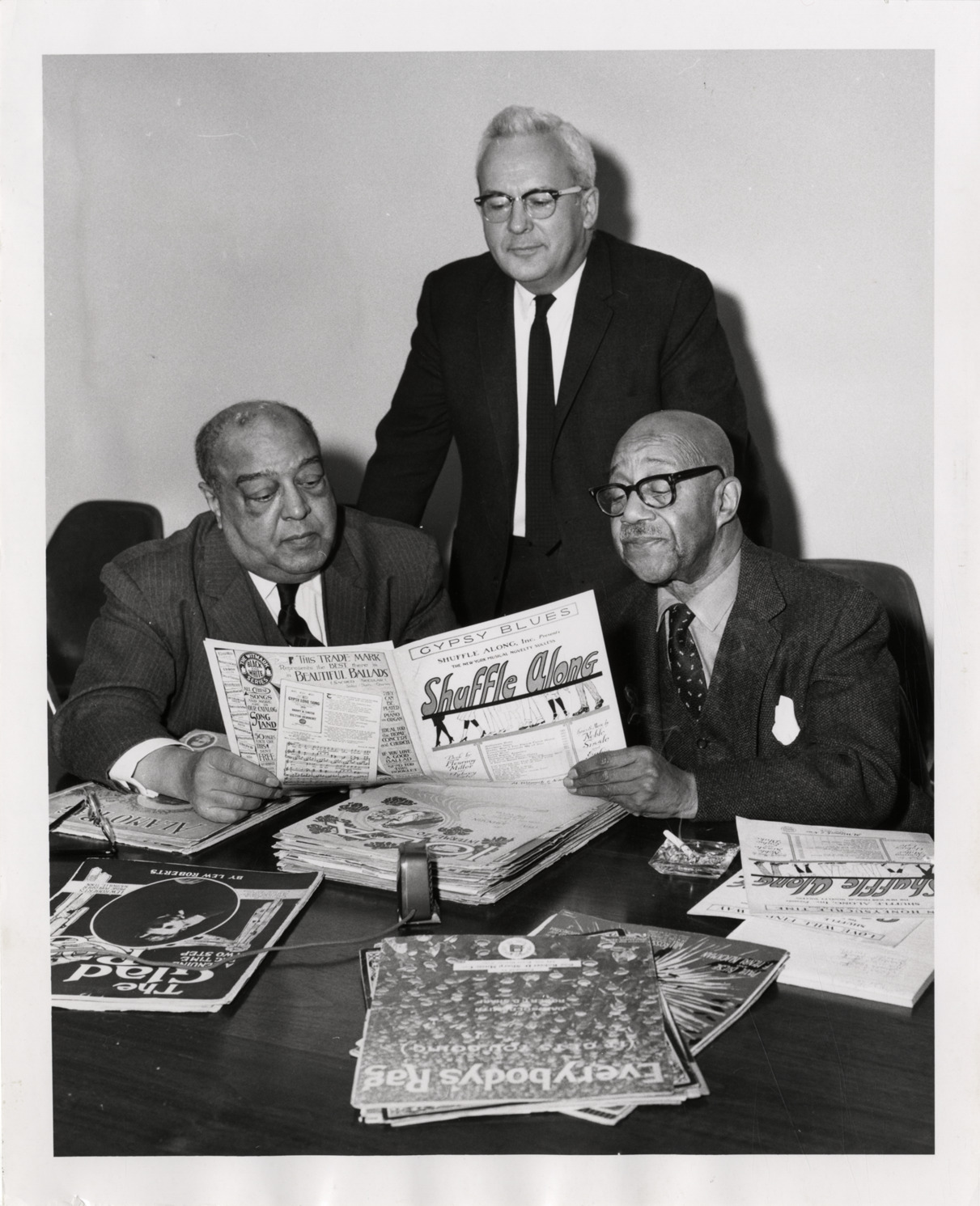 Eubie Blake, Mr. Johns and Kurtz Myers identifying materials in the Will Aubrey Popular Music Collection