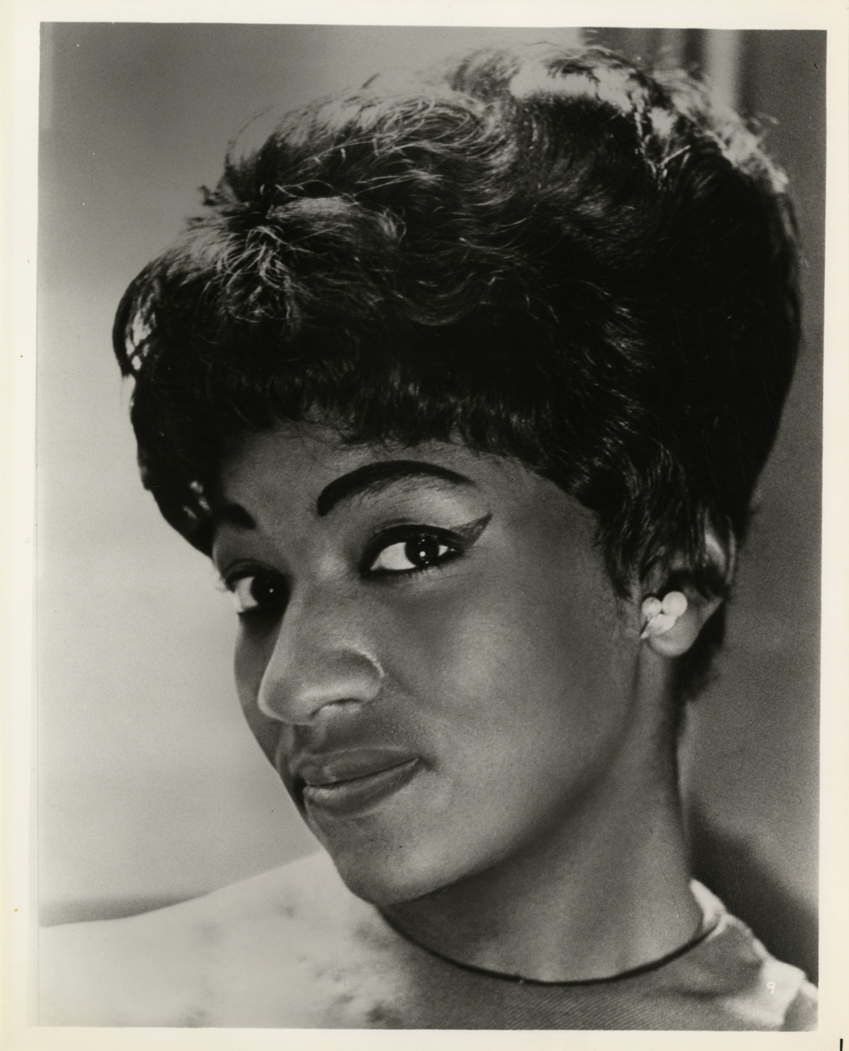 Portrait of mezzo-soprano Grace Bumbry. Stamped on back: "S. Hurok presents Grace Bumbry, mezzo-soprano. Hurok Attractions, 730 Fifth Avenue, N.Y. 19, N.Y. Martin Feinstein, publicity director; Michael Sweeley, associate. Phone: Circle 5-0500."