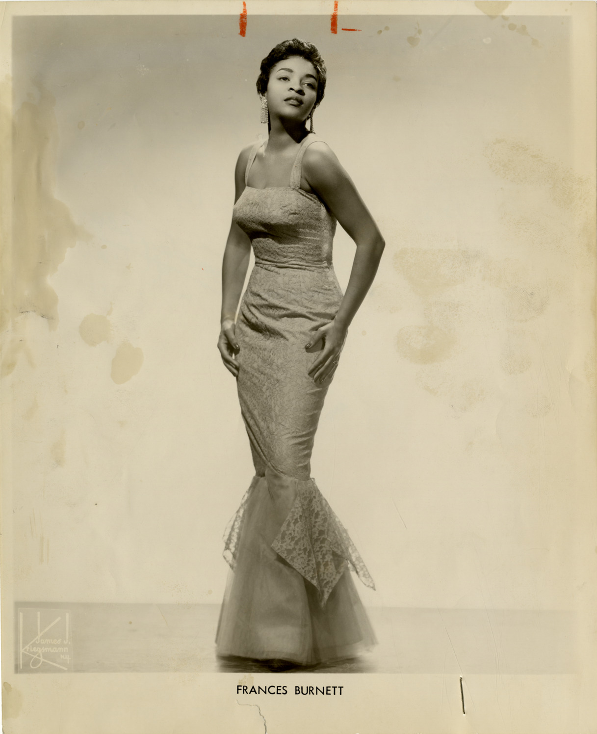 Favorite this☆ Frances Burnett Description: Portrait of singer Frances Burnett. Printed on front: "Frances Burnett." Handwritten on back: "Frances Burnett. Flame Show Bar beg. Fri. 4/3/59. Recordings: 'Walkin' into love' and 'Look up.'" Details Resource ID: hk000427 Subject: Burnett, Frances, -1993 African American women singers Photographic prints Date Issued: 1959 Format: 1 photographic print ; 10 x 8 in. Member of: E. Azalia Hackley Collection Filing Location: Biography--Burnett, Frances Rights: Physical rights are retained by DPL. Copyright is retained in accordance with U.S. copyright laws.