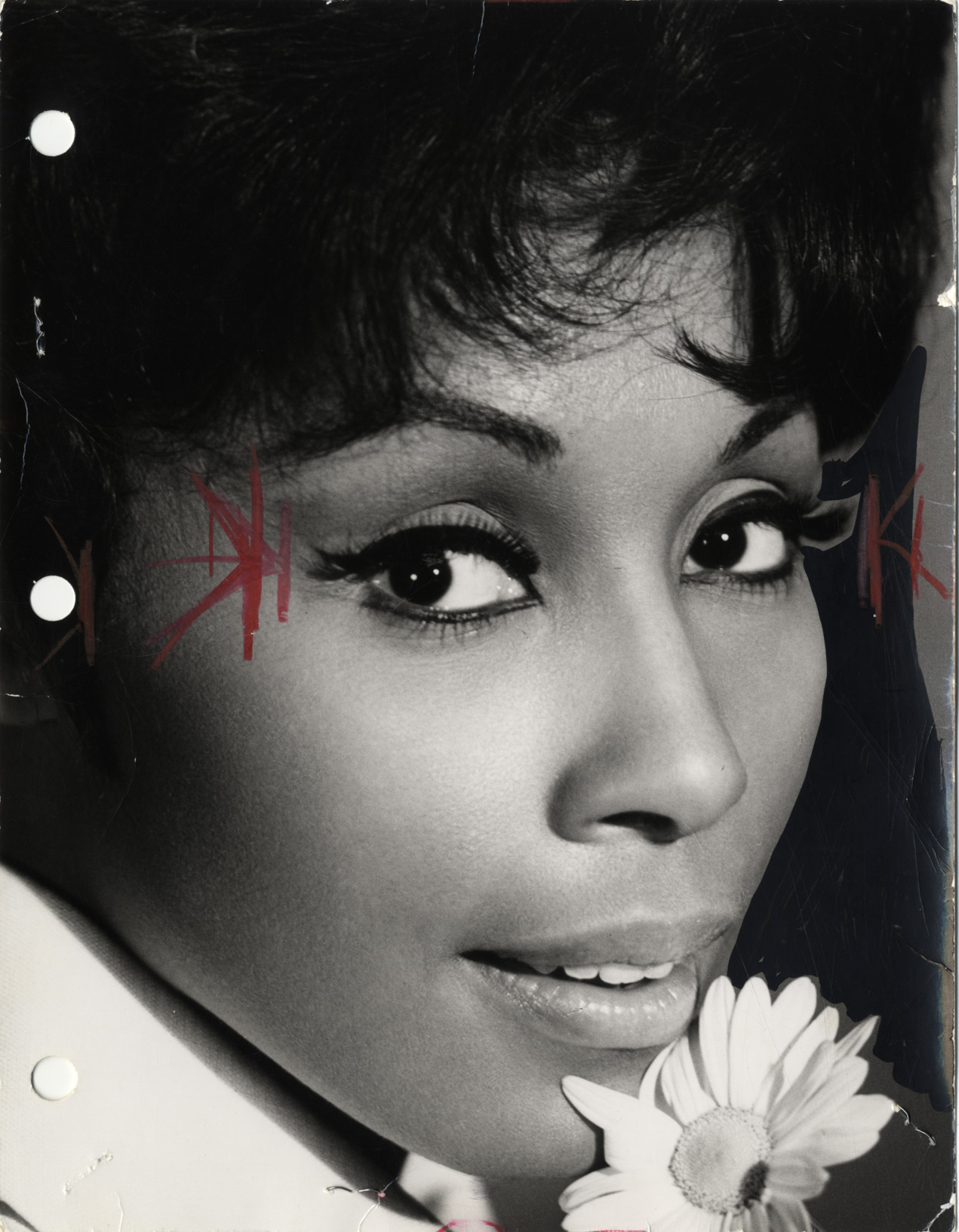Portrait of singer and actress Diahann Carroll. Part of newspaper clipping on back: "Diahann Carroll will be 'Julia'" by Bettelou Peterson.