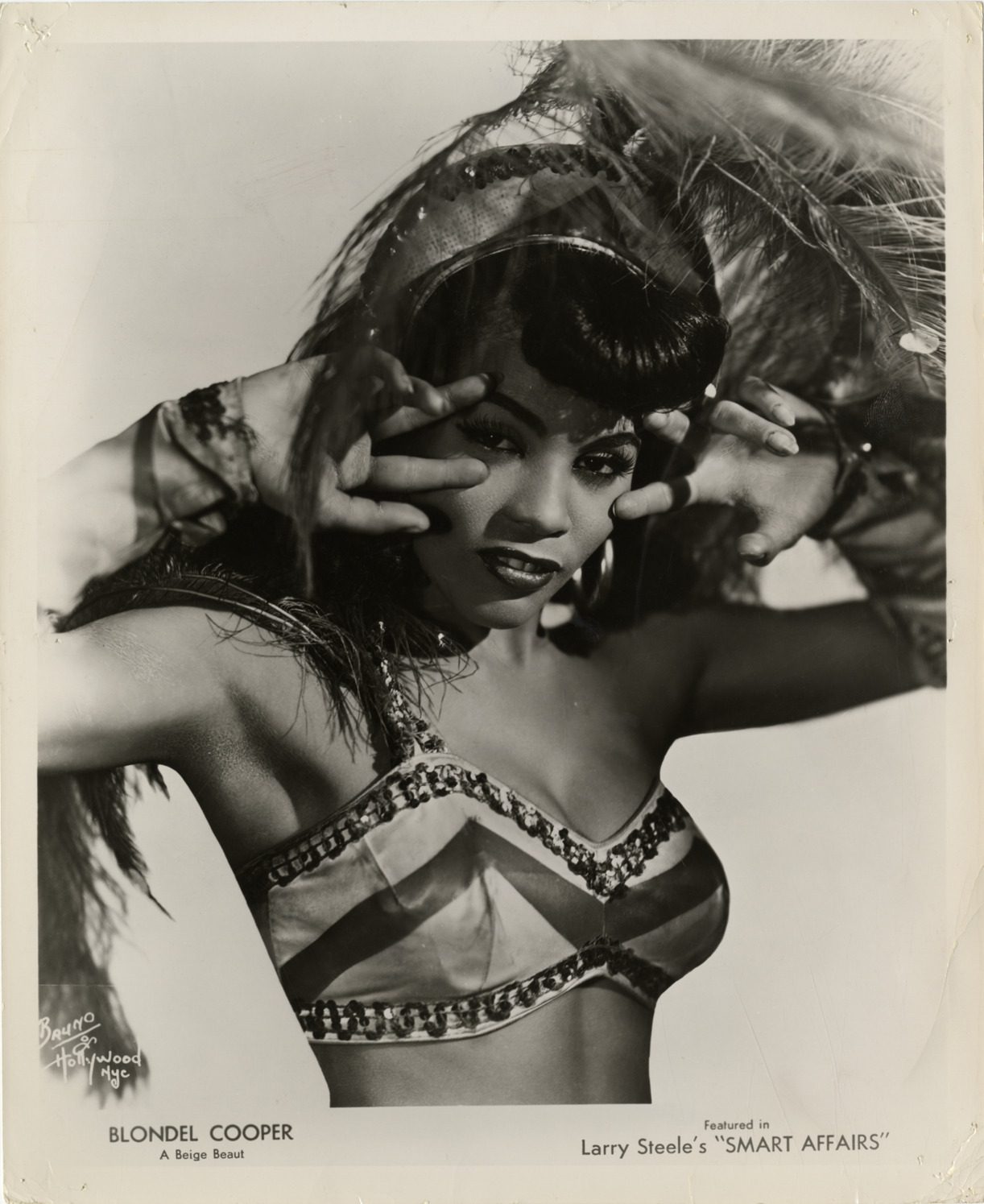 Favorite this☆ Blondell Cooper Description: Portrait of singer and showgirl Blondell Cooper. Printed on front: "Blondel [sic] Cooper, a beige beaut. Featured in Larry Steele's 'Smart affairs.' Bruno of Hollywood, NYC." Handwritten on back: "Blondel [sic] Cooper." Details Resource ID: hk000574 Creator: Bruno of Hollywood Subject: Cooper, Blondell African American women singers Showgirls Photographers--New York (State)--New York Photographic prints Date Issued: Unknown year Format: 1 photographic print ; 10 x 8 in. Member of: E. Azalia Hackley Collection Filing Location: Biography--Cooper, Blondell Rights: Physical rights are retained by DPL. Copyright is retained in accordance with U.S. copyright laws.