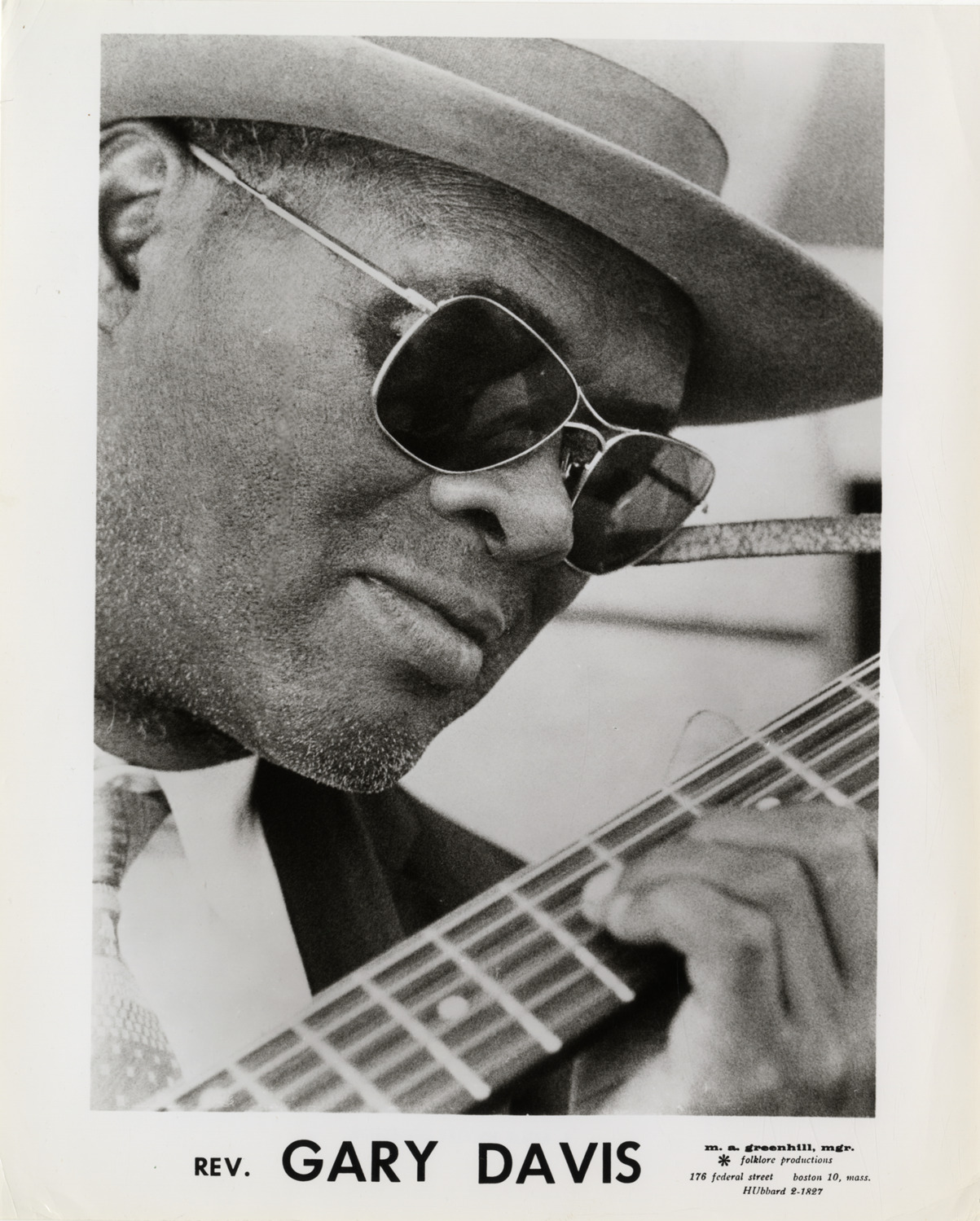Favorite this☆ Reverend Gary Davis Description: Portrait of blues musician Reverend Gary Davis, with guitar. Printed on front: "Rev. Gary Davis. M.A. Greenhill, mgr. Folklore Productions, 176 Federal Street, Boston 10, Mass. HUbbard 2-1827. Handwritten on back: "Rev. Gary Davis." Details Resource ID: hk000610 Subject: Davis, Gary, 1896-1972 African American musicians African American guitarists Blues musicians Photographic prints Date Issued: Unknown year Format: 1 photographic print ; 10 x 8 in. Member of: E. Azalia Hackley Collection Filing Location: Biography--Davis, Gary, Rev. Rights: Physical rights are retained by DPL. Copyright is retained in accordance with U.S. copyright laws.