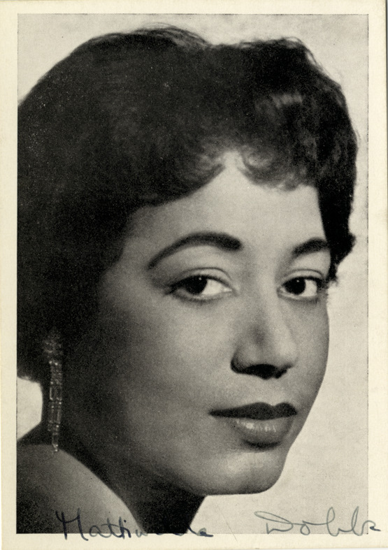 Favorite this☆ Mattiwilda Dobbs Description: Portrait of soprano Mattiwilda Dobbs. Handwritten on front: "Mattiwilda Dobbs." Typed on back: "Mattiwilda Dobbs." Details Resource ID: hk000695 Subject: Dobbs, Mattiwilda African American women singers Photographic prints Date Issued: Unknown year Format: 1 photographic print ; 5.25 x 3.75 in. Member of: E. Azalia Hackley Collection Filing Location: Biography--Dobbs, Mattiwilda Rights: Physical rights are retained by DPL. Copyright is retained in accordance with U.S. copyright laws.
