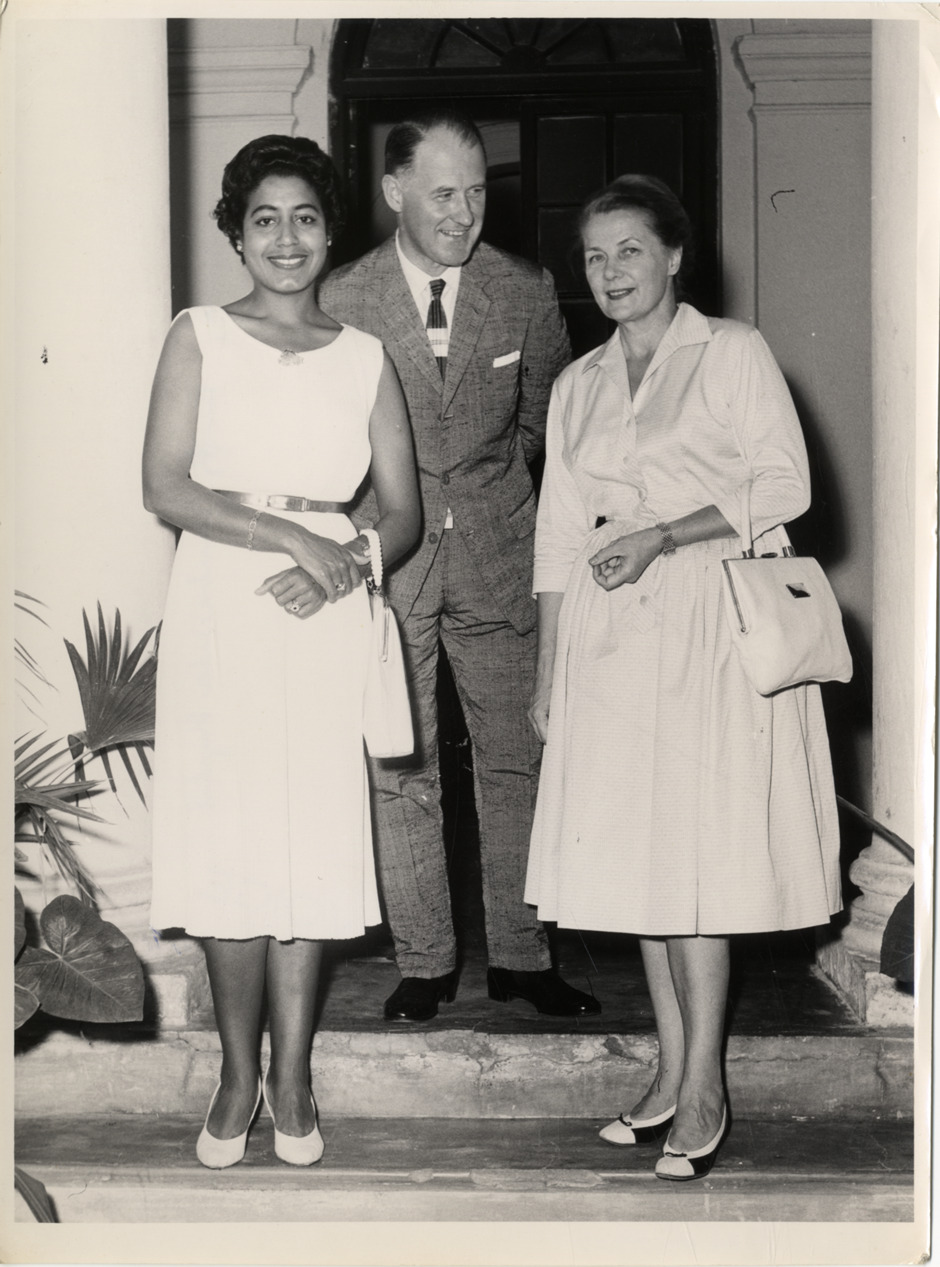 Favorite this☆ Mattiwilda Dobbs, Alva Myrdal and Bengt Janzon Description: Portrait of soprano Mattiwilda Dobbs posing with husband Bengt Janzon and Swedish ambassador Alva Myrdal. Stamped on back: "Phone: 23907. Fotovoice, press photographers, 56, Darya Gunj, Dehli, 7." Handwritten on back: "Mattiwilda Dobbs. Geekie, Bengt, Ambassador Myrdal." Details Resource ID: hk000722 Creator: Fotovoice Subject: Dobbs, Mattiwilda African American women singers Janzon, Bengt Myrdal, Alva, 1902-1986 Photographers--India--Dehli Photographic prints Date Issued: 1959-10 Format: 1 photographic print ; 8.5 x 6.25 in. Member of: E. Azalia Hackley Collection Filing Location: Biography--Dobbs, Mattiwilda (Europe) Rights: Physical rights are retained by DPL. Copyright is retained in accordance with U.S. copyright laws.