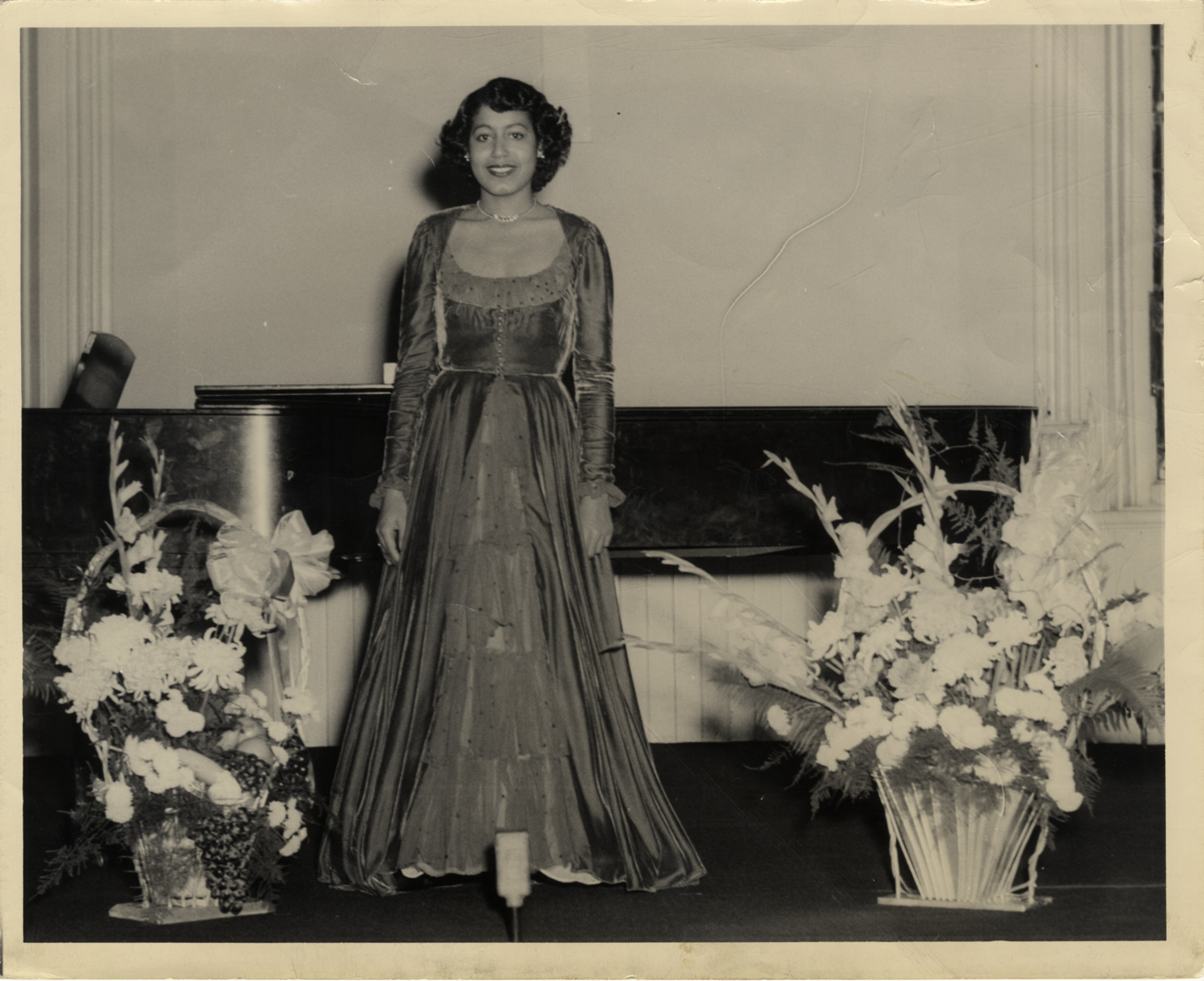 Favorite this☆ Mattiwilda Dobbs Description: Portrait of soprano Mattiwilda Dobbs. Floral arrangements in foreground; piano in background. Handwritten on back: "M. Dobbs." Details Resource ID: hk000749 Subject: Dobbs, Mattiwilda African American women singers Flower arrangement Photographic prints Date Issued: Unknown year Format: 1 photographic print ; 8 x 10 in. Member of: E. Azalia Hackley Collection Filing Location: Biography--Dobbs, Mattiwilda Rights: Physical rights are retained by DPL. Copyright is retained in accordance with U.S. copyright laws.