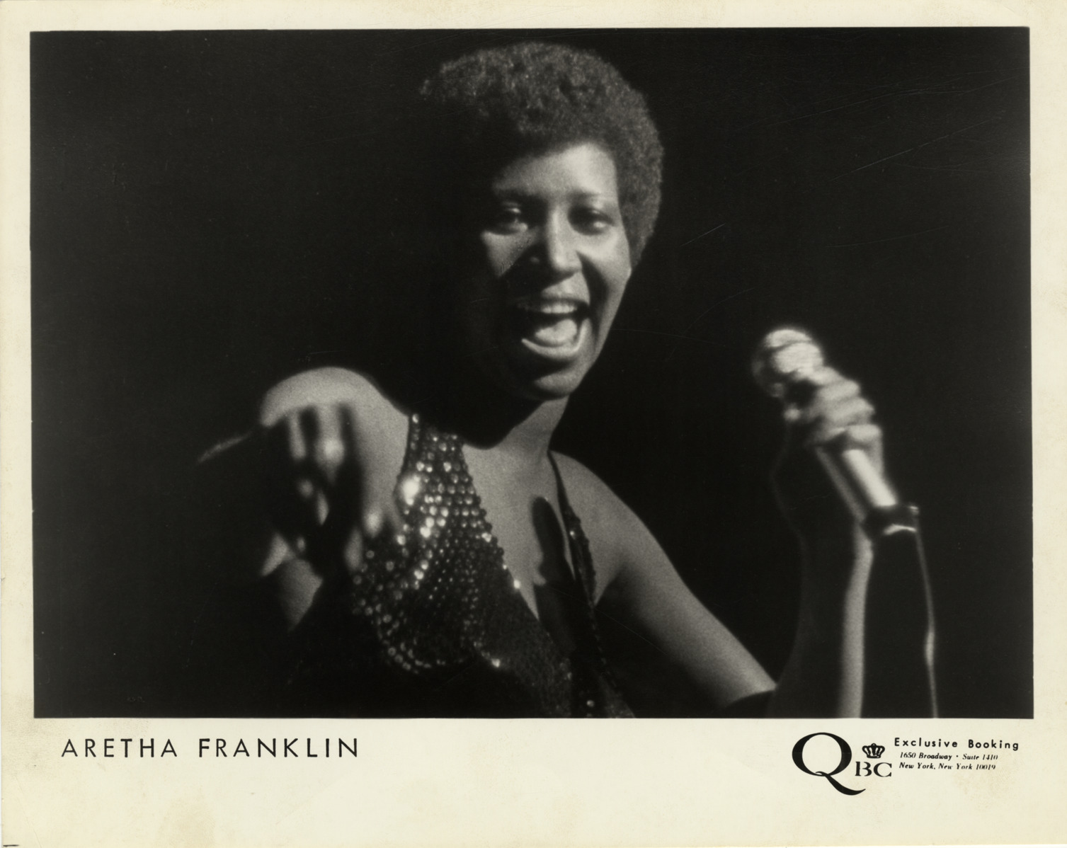 Favorite this☆ Aretha Franklin Description: Portrait of singer Aretha Franklin. Printed on front: "Aretha Franklin. QBC, exclusive booking, 1650 Broadway, Suite 1410, New York, New York 10019." Details Resource ID: hk000872 Subject: Franklin, Aretha African American women singers Photographic prints Date Issued: Unknown year Format: 1 photographic print ; 8 x 10 in. Member of: E. Azalia Hackley Collection Filing Location: Biography--Franklin, Aretha Rights: Physical rights are retained by DPL. Copyright is retained in accordance with U.S. copyright laws.