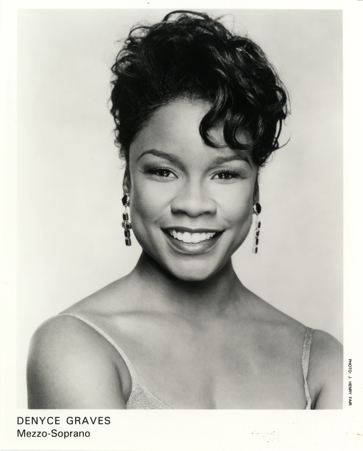 Favorite this☆ Denyce Graves Description: Portrait of mezzo-soprano Denyce Graves. Printed on front: "Denyce Graves, mezzo-soprano. Photo: J. Henry Fair." Details Resource ID: hk000913 Creator: Fair, J. Henry Subject: Graves, Denyce African American women singers Photographic prints Date Issued: Unknown year Format: 1 photographic print ; 10 x 8 in. Member of: E. Azalia Hackley Collection Filing Location: Biography--Graves, Denyce Rights: Physical rights are retained by DPL. Copyright is retained in accordance with U.S. copyright laws.