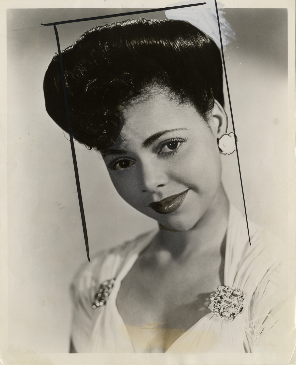 Favorite this☆ Ida James Description: Portrait of singer and actress Ida James. Handwritten on back: "Ida James, songstress at Flame Show Bar, [undecipherable] with Earl Hines, Columbia Records." Details Resource ID: hk001025 Subject: James, Ida, 1920- African American women singers African American actresses Photographic prints Date Issued: Unknown year Format: 1 photographic print ; 10 x 8 in. Member of: E. Azalia Hackley Collection Filing Location: Biography--James, Ida Rights: Physical rights are retained by DPL. Copyright is retained in accordance with U.S. copyright laws.