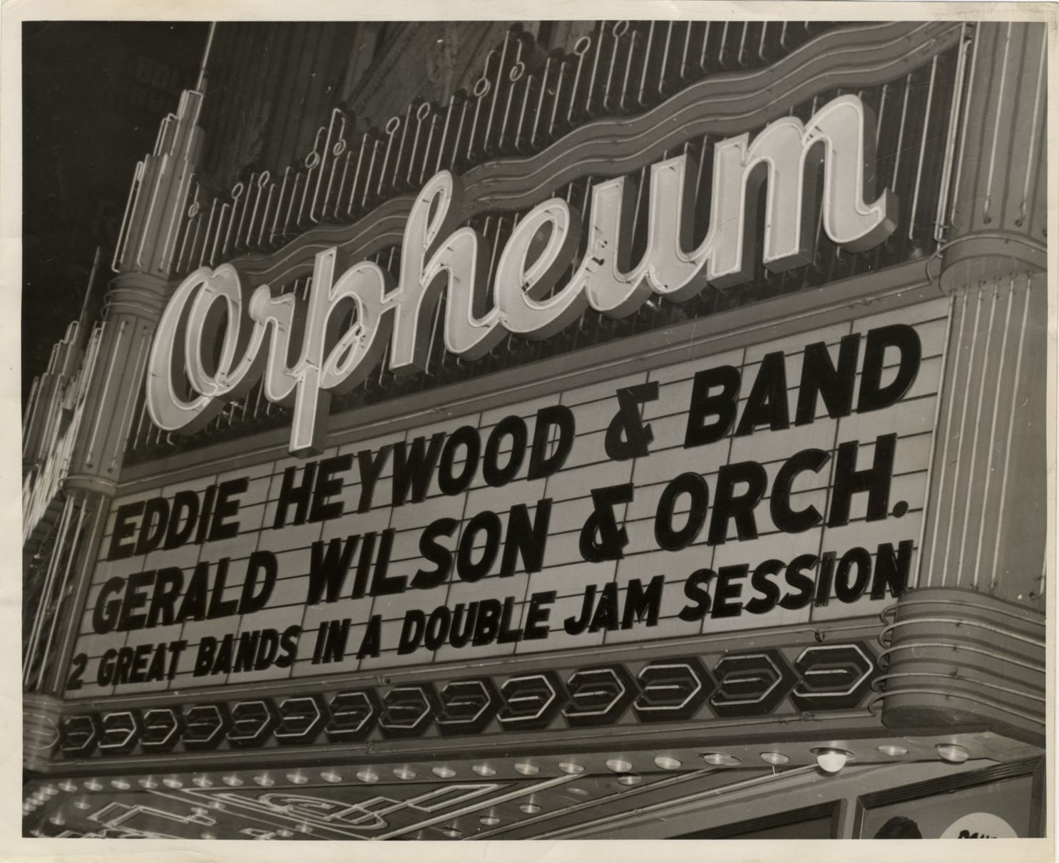 Orpheum marquee featuring Eddie Heywood and Gerald Wilson