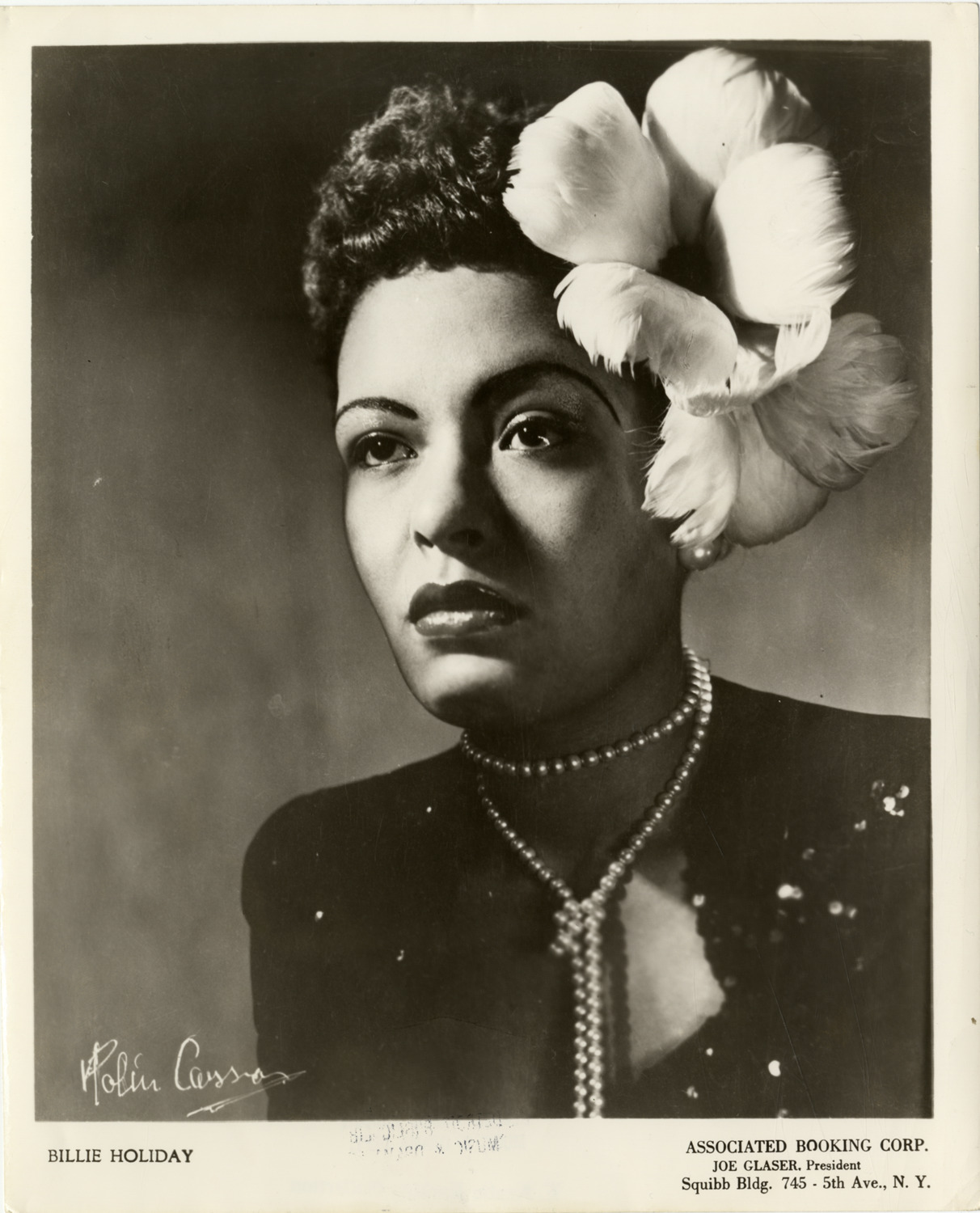 Favorite this☆ Billie Holiday Description: Portrait of singer Billie Holiday. Printed on front: "Billie Holiday. Associated Booking Corp. Joe Glaser, president. Squibb Bldg. 745, 5th Ave., N.Y. Robin Carson." Details Resource ID: hk001066 Creator: Carson, Robin Subject: Holiday, Billie, 1915-1959 African American women singers Photographic prints Date Issued: Unknown year Format: 1 photographic print ; 10 x 8 in. Member of: E. Azalia Hackley Collection Filing Location: Biography--Holiday, Billie Rights: Physical rights are retained by DPL. Copyright is retained in accordance with U.S. copyright laws.
