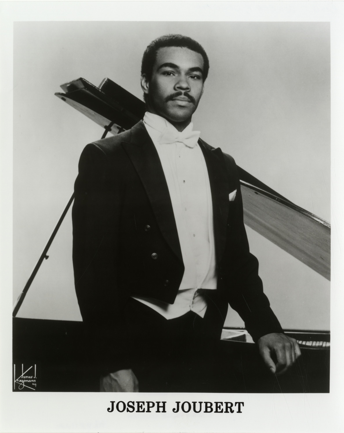 Favorite this☆ Joseph Joubert Description: Portrait of pianist Joe Jordan. Printed on front: "Joseph Joubert. James J. Kriegsmann, N.Y." Handwritten on back: "About 1992-93." Details Resource ID: hk001122 Creator: Kriegsmann, James J. Subject: Joubert, Joseph, 1958- African American pianists Photographers--New York (State)--New York Photographic prints Date Issued: 1992 to 1993 Format: 1 photographic print ; 10 x 8 in. Member of: E. Azalia Hackley Collection Filing Location: Biography--Joubert, Joseph Rights: Physical rights are retained by DPL. Copyright is retained in accordance with U.S. copyright laws.