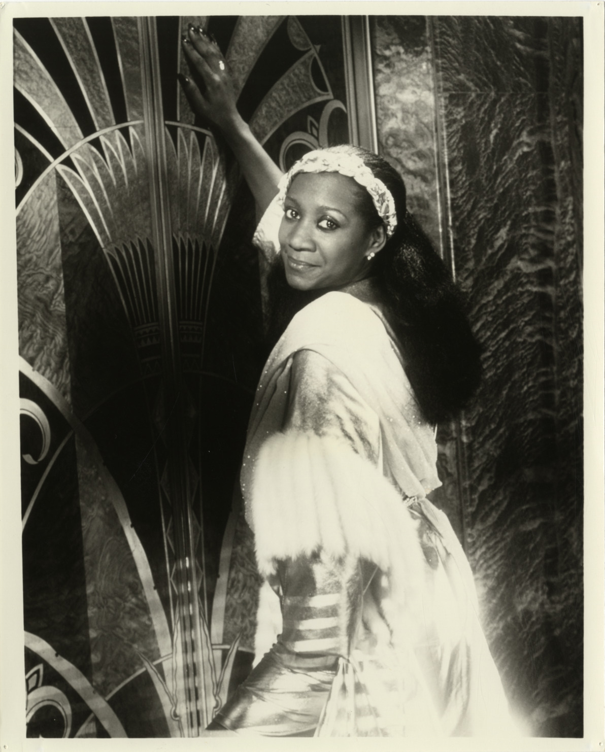Portrait of singer Patti LaBelle in the musical, "Your arms too short to box with God." Label on back: "The electrifying Patti LaBelle stars in the new production of the smash hit musical Vinnette Carroll's 'Your arms too short to box with God,' direct from a triumphant run on Broadway. Fisher Theatre begins Tuesday, March 15 thru March 27 with option for an extra week." Handwritten on back: "Patti LaBelle."