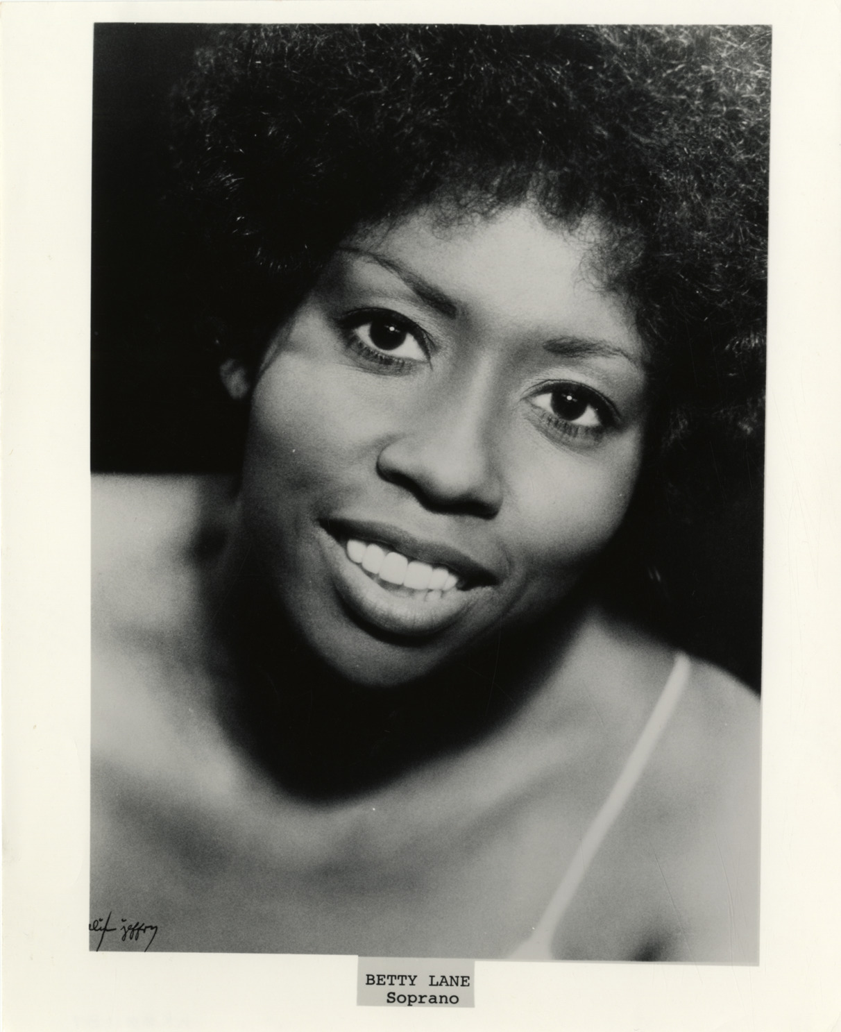 Portrait of soprano Betty Lane. Printed on front: "Betty Lane, soprano. Alix Jeffry."