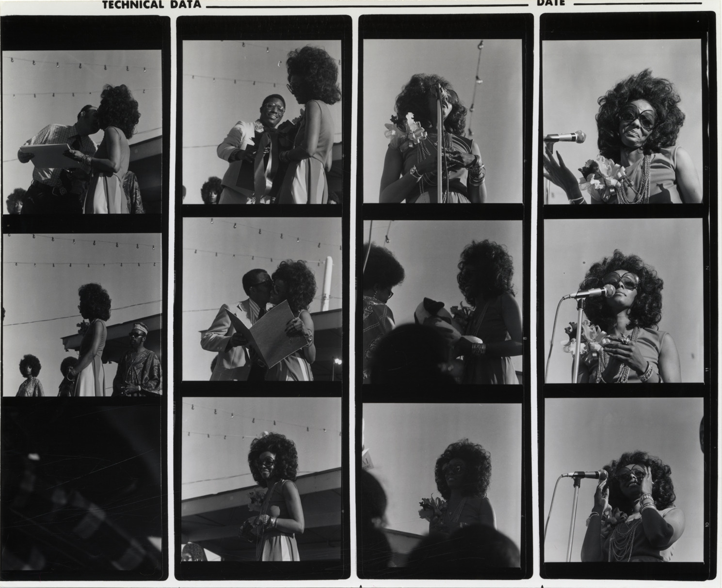 Contact sheet of images of singer Laura Lee during "Laura Lee Day" at the Afro-American Riverfront Festival in Detroit. Handwritten on back: "Lee, Laura."