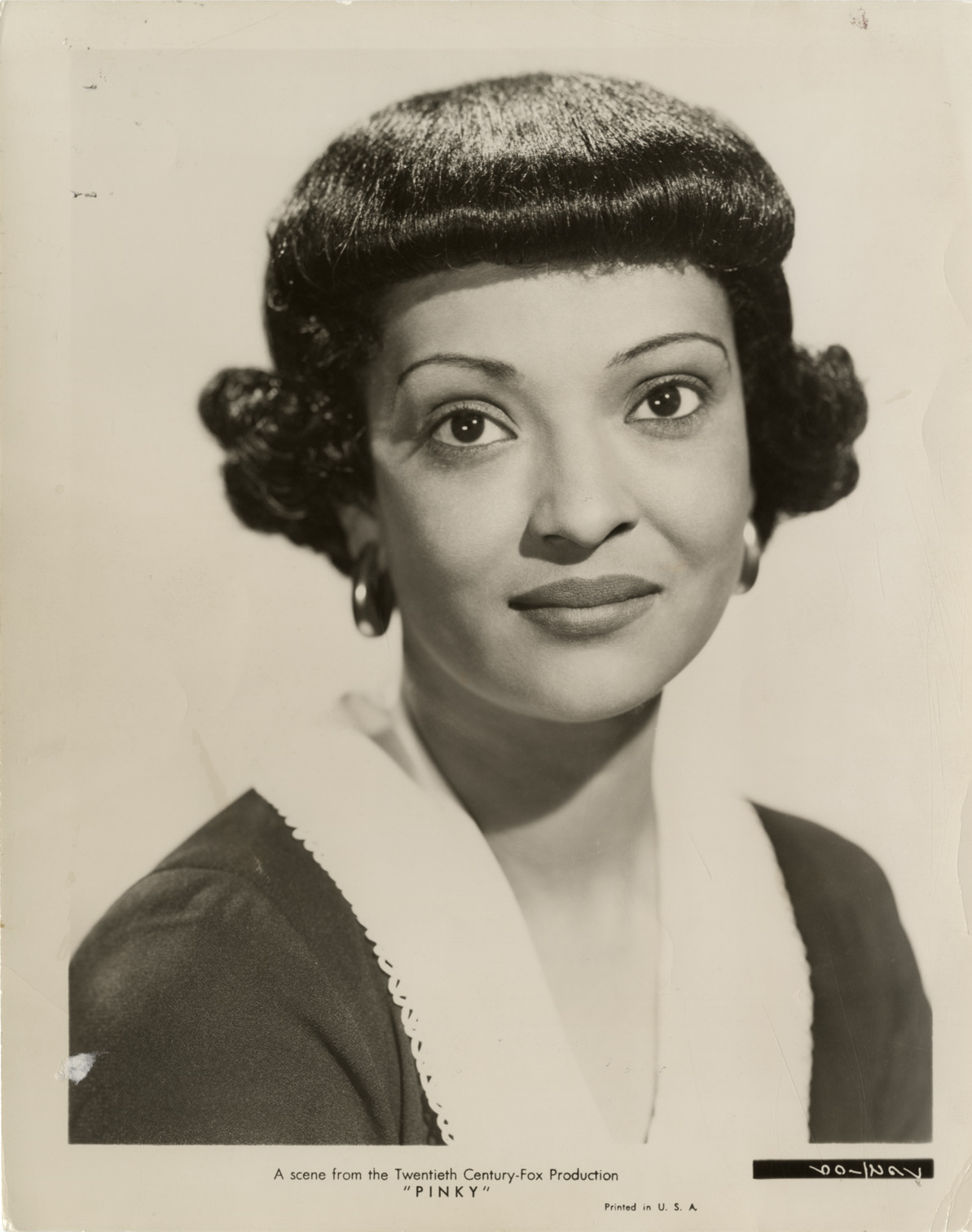 Favorite this☆ Nina Mae McKinney Description: Portrait of actress Nina Mae McKinney. Printed on front: "A scene from the Twentieth Century-Fox production, 'Pinky.' Printed in U.S.A." Handwritten on back: "McKinney, Nina Mae." Details Resource ID: hk001330 Subject: McKinney, Nina Mae, 1912-1967 African American actresses Photographic prints Date Issued: Unknown year Format: 1 photographic print ; 10 x 8 in. Member of: E. Azalia Hackley Collection Filing Location: Biography--McKinney, Nina Mae Rights: Physical rights are retained by DPL. Copyright is retained in accordance with U.S. copyright laws.