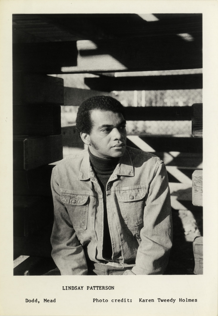 Favorite this☆ Lindsay Patterson Description: Portrait of writer Lindsay Patterson. Printed on front: "Lindsay Patterson. Dodd, Mead. Photo credit: Karen Tweedy Holmes." Handwritten on back: "Patterson, Lindsay." Details Resource ID: hk001408 Creator: Holmes, Karen Tweedy Subject: Patterson, Lindsay, 1942- African American authors Photographic prints Date Issued: Unknown year Format: 1 photographic print ; 7.25 x 5 in. Member of: E. Azalia Hackley Collection Filing Location: Biography--Patterson, Lindsay Rights: Physical rights are retained by DPL. Copyright is retained in accordance with U.S. copyright laws.
