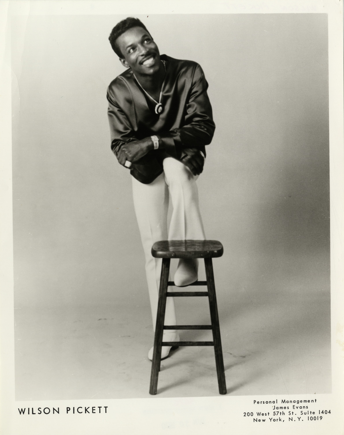 Favorite this☆ Wilson Pickett Description: Portrait of singer Wilson Pickett. Printed on front: "Wilson Pickett. Personal management, James Evans. 200 West 57th St., Suite 1404, New York, N.Y. 10019." Handwritten on back: "Wilson Pickett." Details Resource ID: hk001426 Subject: Pickett, Wilson African American singers Photographic prints Date Issued: Unknown year Format: 1 photographic print ; 10 x 8 in. Member of: E. Azalia Hackley Collection Filing Location: Biography--Pickett, Wilson Rights: Physical rights are retained by DPL. Copyright is retained in accordance with U.S. copyright laws.