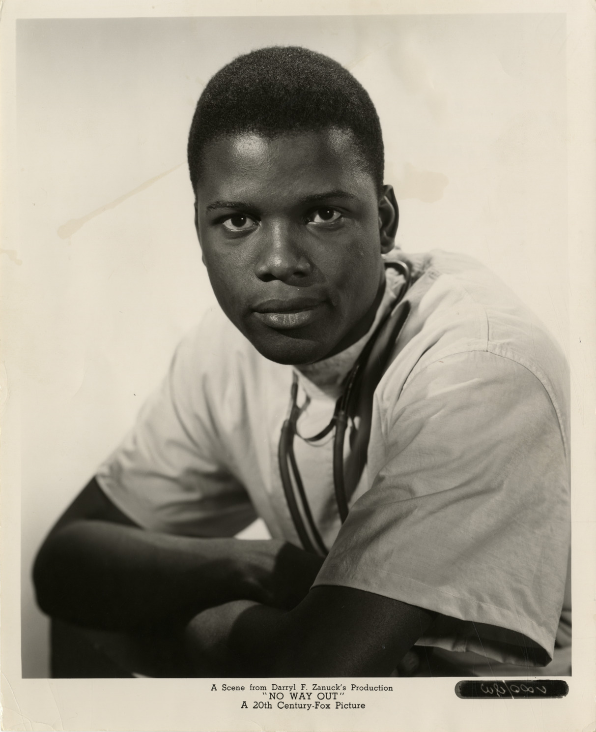 Favorite this☆ Sidney Poitier Description: Portrait of actor Sidney Poitier. Printed on front: "A scene from Darryl F. Zanuck's production, 'No way out.' A Twentieth Century-Fox picture." Handwritten on back: "Sidney Poitier." Details Resource ID: hk001435 Subject: Poitier, Sidney African American actors Photographic prints Date Issued: 1950 Format: 1 photographic print ; 10 x 8 in. Member of: E. Azalia Hackley Collection Filing Location: Biography--Poitier, Sidney Rights: Physical rights are retained by DPL. Copyright is retained in accordance with U.S. copyright laws.