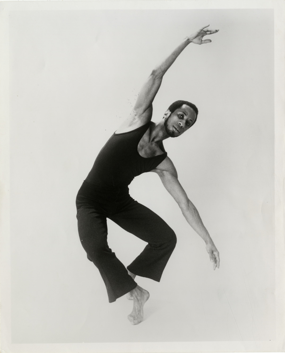 Portrait of dancer Eleo Pomare. Stamped on back: "Pacific World Artists. 250 West 57th St. (Suit [sic] 529), New York, N.Y. 10019. Tel. (212) 581-3644."