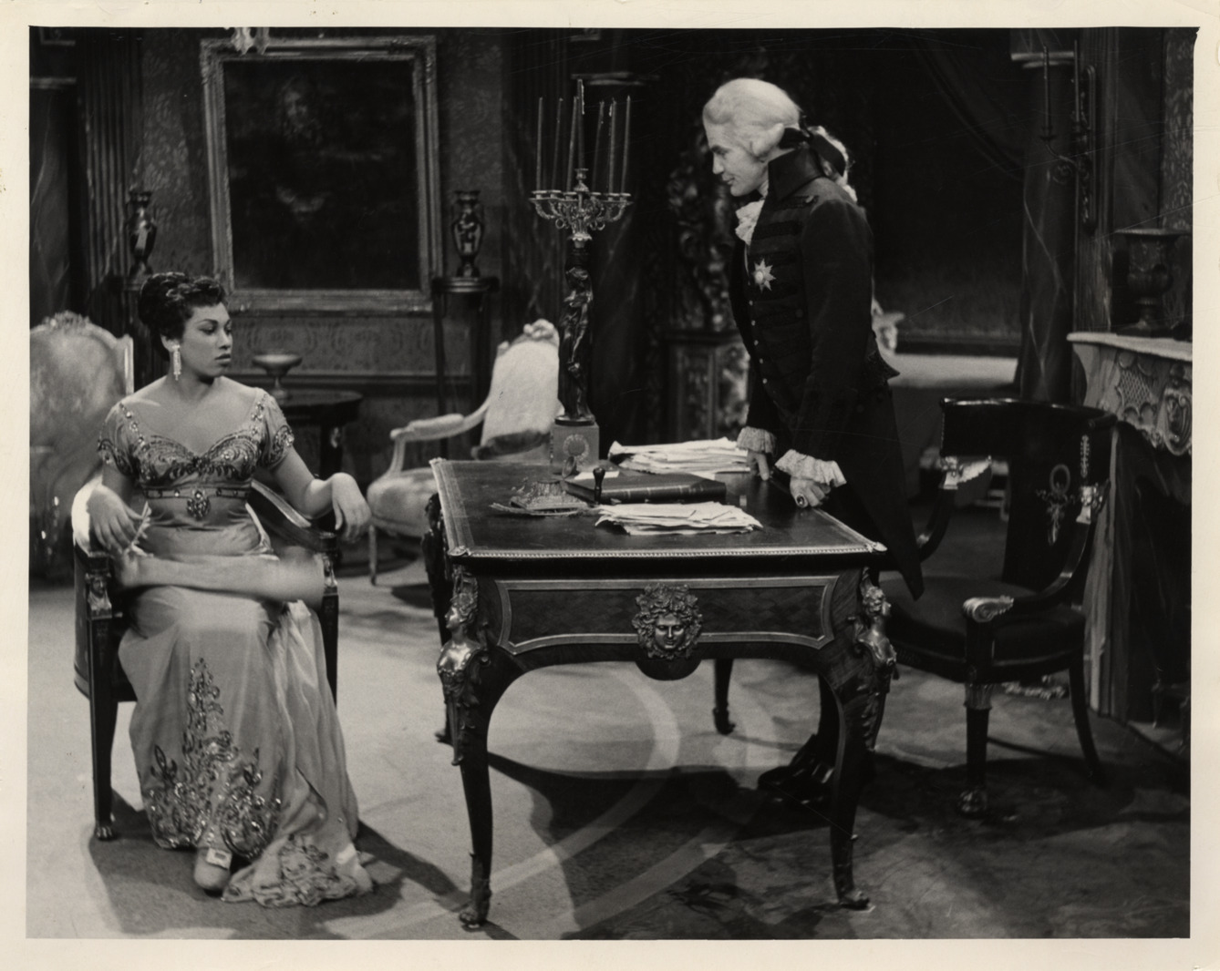 Favorite this☆ Leontyne Price in "Tosca" Description: View of soprano Leontyne Price and unidentified singer in Puccini's opera, "Tosca." Stamped on back: "NBC photo." Handwritten on back: "Price, Leontyne." Details Resource ID: hk001483 Subject: Price, Leontyne African American women singers Puccini, Giacomo, 1858-1924. Tosca Photographic prints Date Issued: Unknown year Format: 1 photographic print ; 7.25 x 9 in. Member of: E. Azalia Hackley Collection Filing Location: Biography--Price, Leontyne Rights: Physical rights are retained by DPL. Copyright is retained in accordance with U.S. copyright laws.