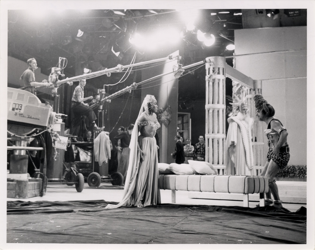 Favorite this☆ Leontyne Price and cast in "The magic flute" Description: View of soprano Leontyne Price as Pamina and other cast members in Mozart's opera, "The magic flute." Television cameras and boom operators in background. Handwritten on back: "Leontyne Price in 'The magic flute.' (TV)." Details Resource ID: hk001496 Subject: Price, Leontyne African American women singers Mozart, Wolfgang Amadeus, 1756-1791. Zauberflote Television cameras Photographic prints Date Issued: Unknown year Format: 1 photographic print ; 7.25 x 9 in. Member of: E. Azalia Hackley Collection Filing Location: Biography--Price, Leontyne Rights: Physical rights are retained by DPL. Copyright is retained in accordance with U.S. copyright laws.