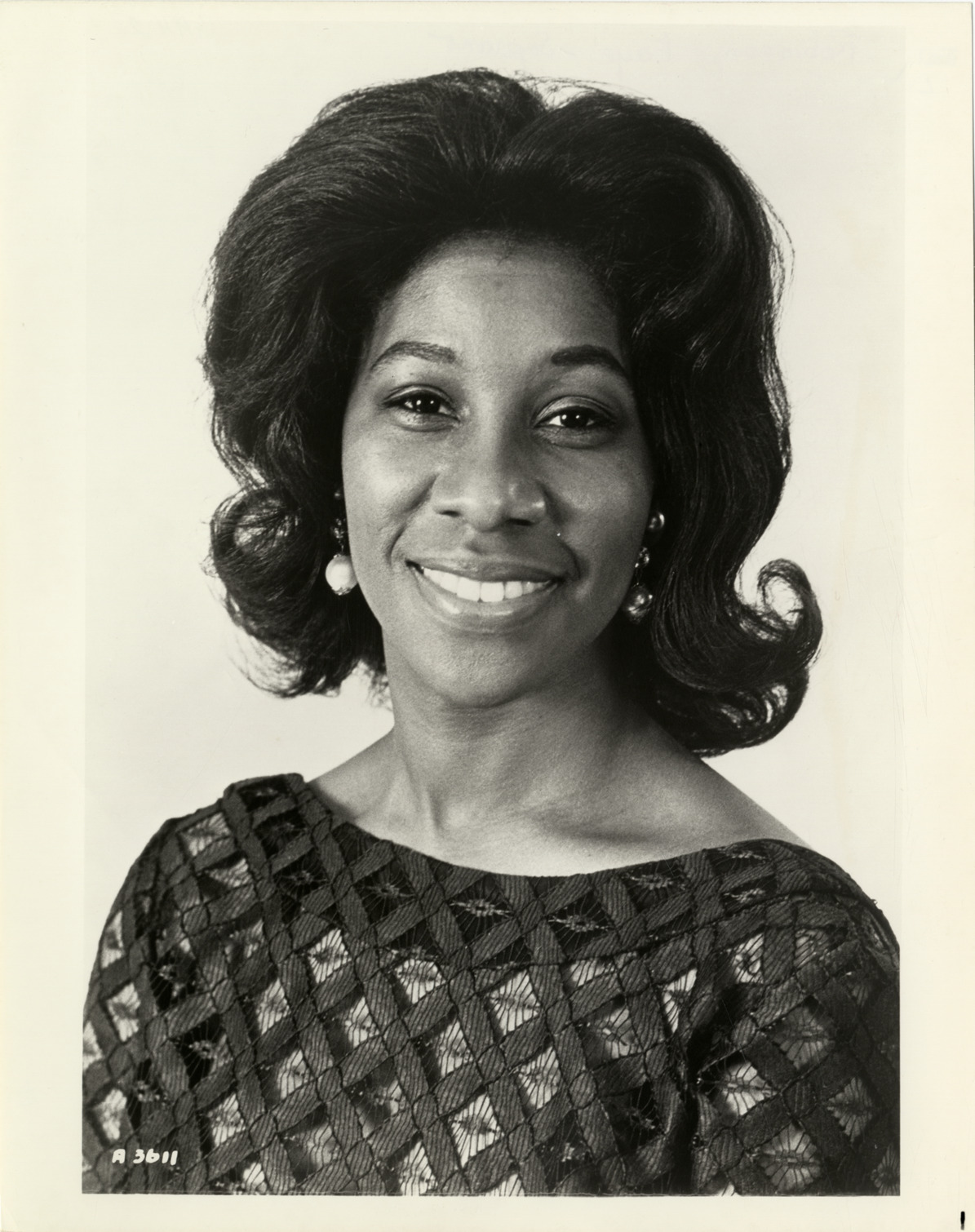 Portrait of soprano Faye Robinson. Typed on back: "Faye Robinson, soprano. Columbia Artists Management Inc. 165 West 57th St., NYC 10019."