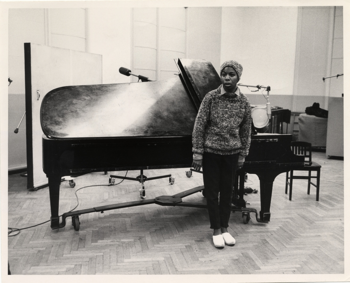 Favorite this☆ Nina Simone Description: View of singer Nina Simone standing in front of piano. Stamped on back: "Please credit RCA Victor Records." Handwritten on back: "Nina Simone." Details Resource ID: hk001641 Subject: Simone, Nina, 1933-2003 African American women singers Piano Photographic prints Date Issued: Unknown year Format: 1 photographic print ; 8 x 10 in. Member of: E. Azalia Hackley Collection Filing Location: Biography--Simone, Nina Rights: Physical rights are retained by DPL. Copyright is retained in accordance with U.S. copyright laws.