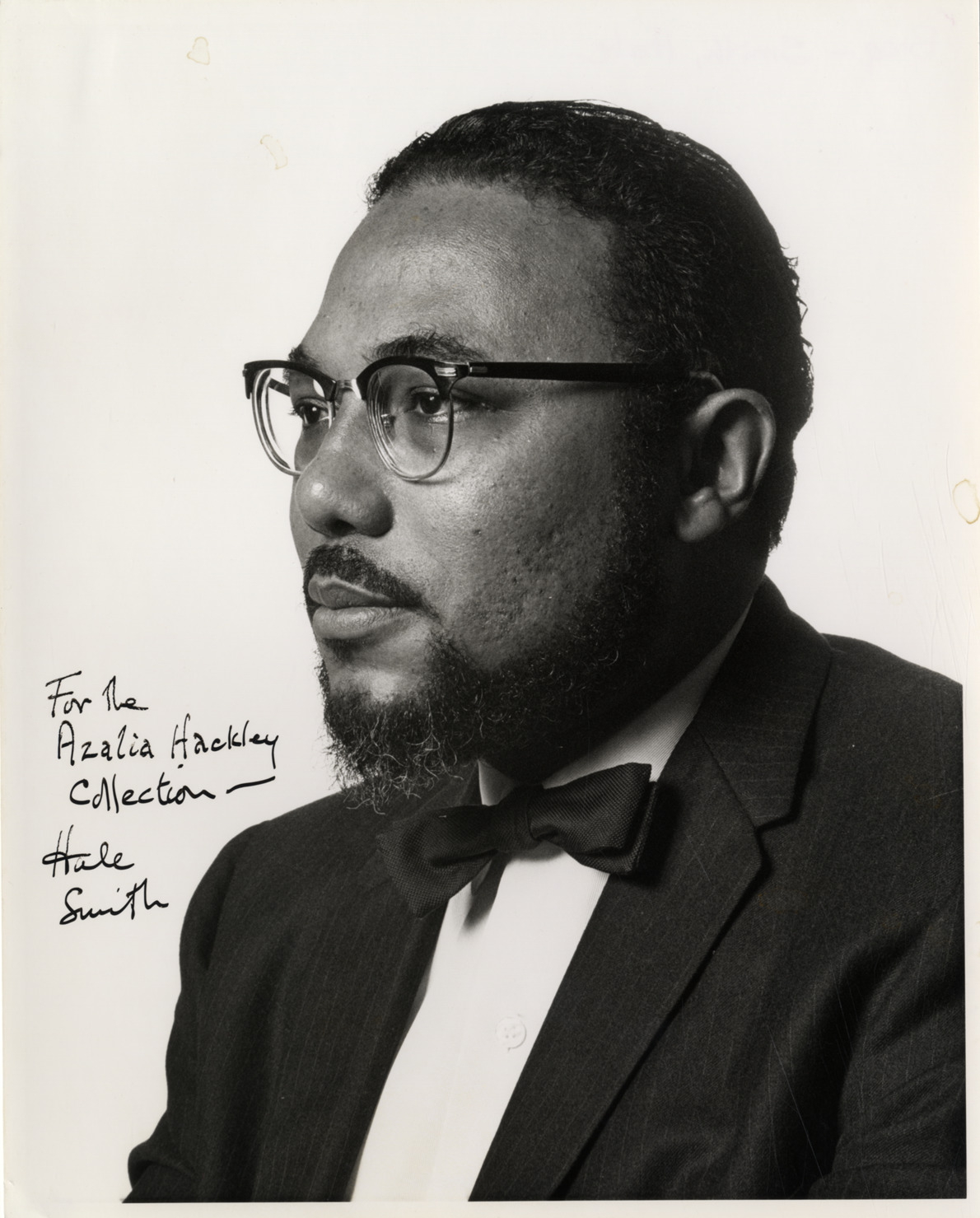 Favorite this☆ Hale Smith Description: Portrait of composer Hale Smith. Autographed on front: "For the Azalia Hackley Collection, Hale Smith." Details Resource ID: hk001647 Subject: Smith, Hale, 1925-2009 Smith, Hale, 1925-2009--Autographs African American composers Photographic prints Date Issued: Unknown year Format: 1 photographic print ; 10 x 8 in. Member of: E. Azalia Hackley Collection Filing Location: Biography--Smith, Hale Rights: Physical rights are retained by DPL. Copyright is retained in accordance with U.S. copyright laws.