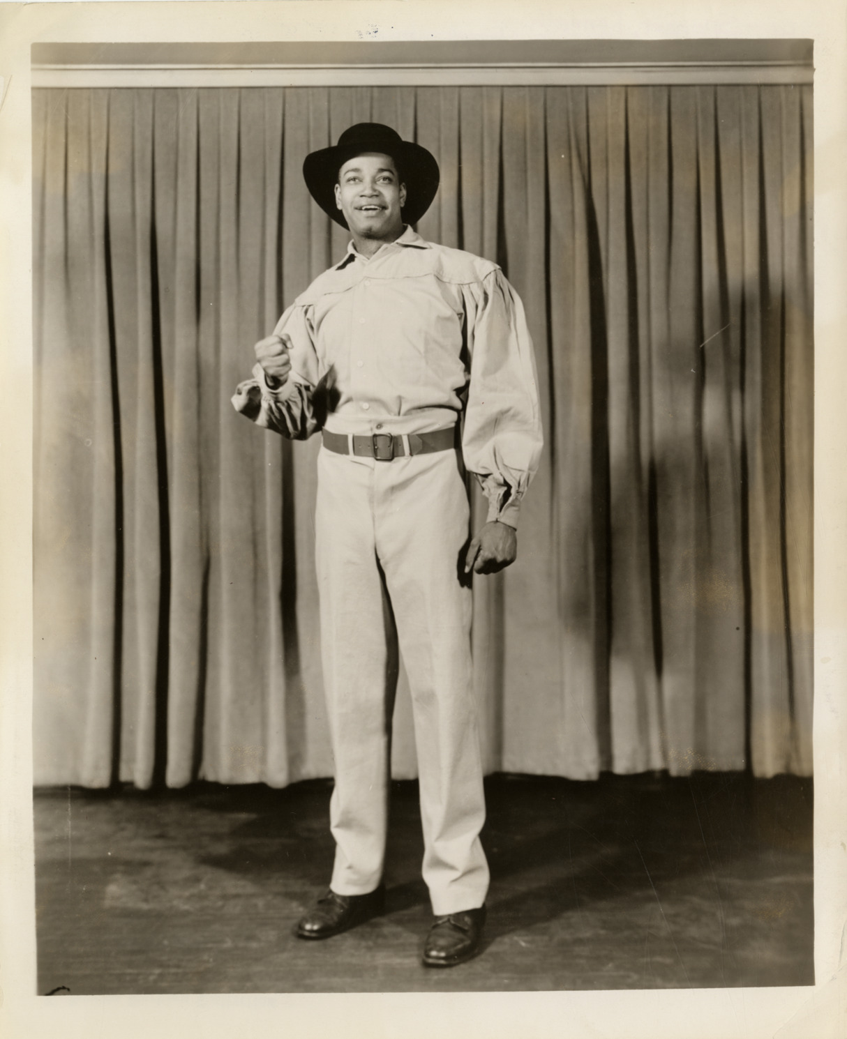 Favorite this☆ Kenneth Spencer in a scene from "Showboat" Description: Portrait of actor Kenneth Spencer, in a scene from the musical, "Showboat." Handwritten on back: "Kenneth Spencer, Showboat." Details Resource ID: hk001667 Subject: Spencer, Kenneth, 1911-1964 African American actors Photographic prints Date Issued: Unknown year Format: 1 photographic print ; 10 x 8 in. Member of: E. Azalia Hackley Collection Filing Location: Biography--Spencer, Kenneth Rights: Physical rights are retained by DPL. Copyright is retained in accordance with U.S. copyright laws.