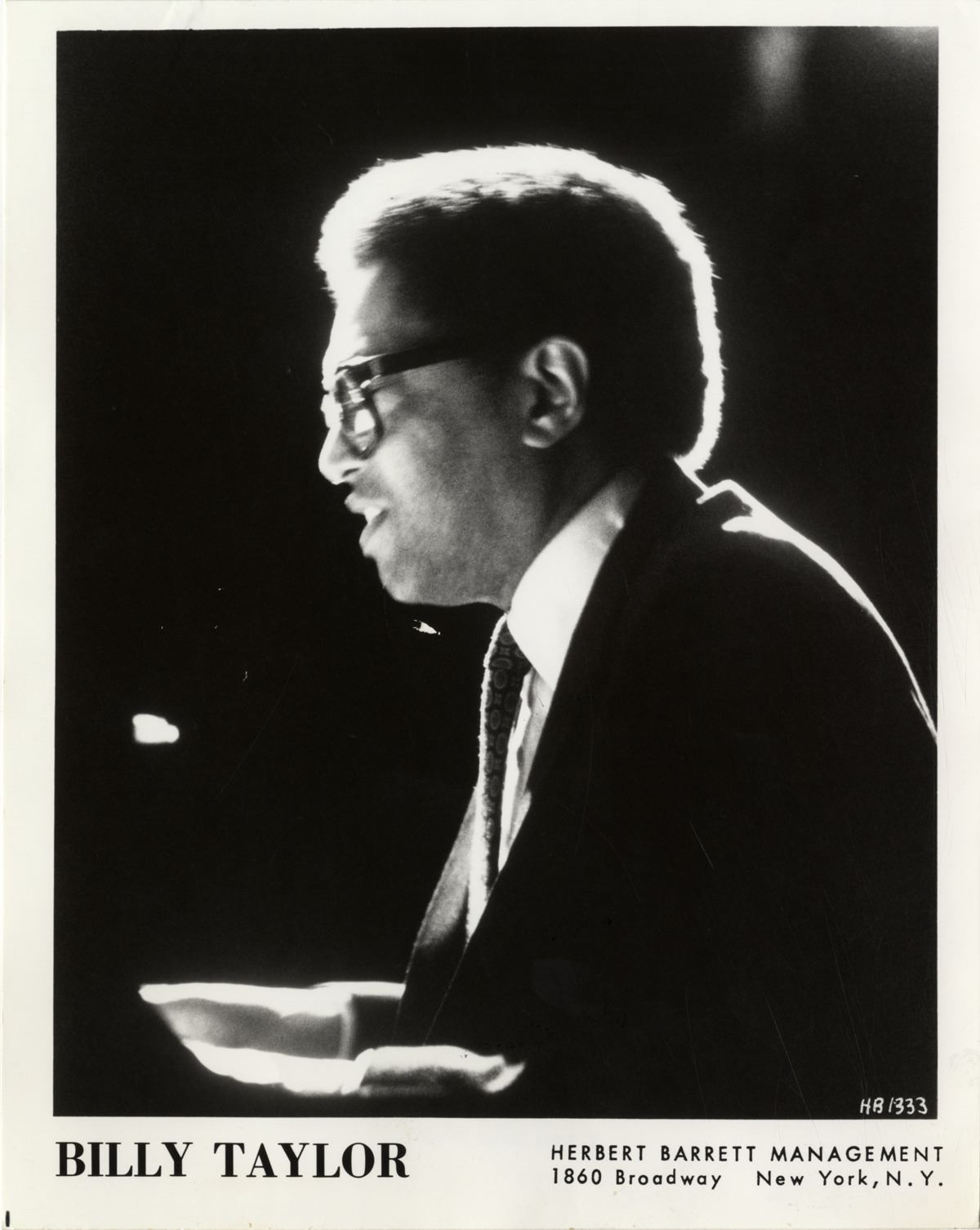 Favorite this☆ Billy Taylor Description: Portrait of pianist Billy Taylor. Printed on front: "Billy Taylor. Herbert Barrett Management. 1860 Broadway, New York, N.Y. 10019." Handwritten on back: "Taylor, Billy." Details Resource ID: hk001688 Subject: Taylor, Billy, 1921-2010 African American pianists Photographic prints Format: 1 photographic print ; 10 x 8 in. Member of: E. Azalia Hackley Collection Filing Location: Biography--Taylor, Billy Rights: Physical rights are retained by DPL. Copyright is retained in accordance with U.S. copyright laws.