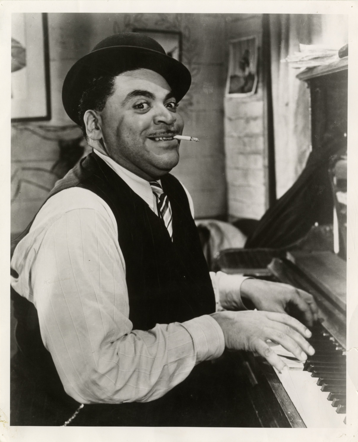 Favorite this☆ Fats Waller Description: Portrait of pianist and composer Fats Waller performing at piano and smoking cigarette. Stamped on back: "Please credit RCA Victor Records." Handwritten on back: "Fats Waller." Details Resource ID: hk001788 Subject: Waller, Fats, 1904-1943 African American pianists African American composers Photographic prints Date Issued: Unknown year Format: 1 photographic print ; 10 x 8 in. Member of: E. Azalia Hackley Collection Filing Location: Biography--Waller, Fats Rights: Physical rights are retained by DPL. Copyright is retained in accordance with U.S. copyright laws.