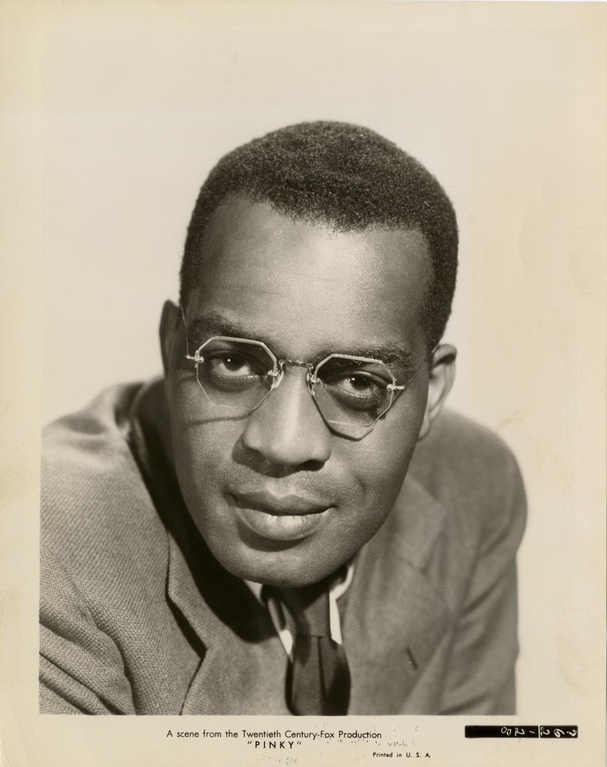 Favorite this☆ Kenny Washington Description: Portrait of actor Kenny Washington. Printed on front: "A scene from the Twentieth Century-Fox Production, 'Pinky.' Printed in U.S.A." Handwritten on back: "Washington, Kenny." Details Resource ID: hk001807 Subject: Washington, Kenny, 1918-1971 African American actors Photographic prints Date Issued: 1949 Format: 1 photographic print ; 10 x 8 in. Member of: E. Azalia Hackley Collection Filing Location: Biography--Washington, Kenny Rights: Physical rights are retained by DPL. Copyright is retained in accordance with U.S. copyright laws.