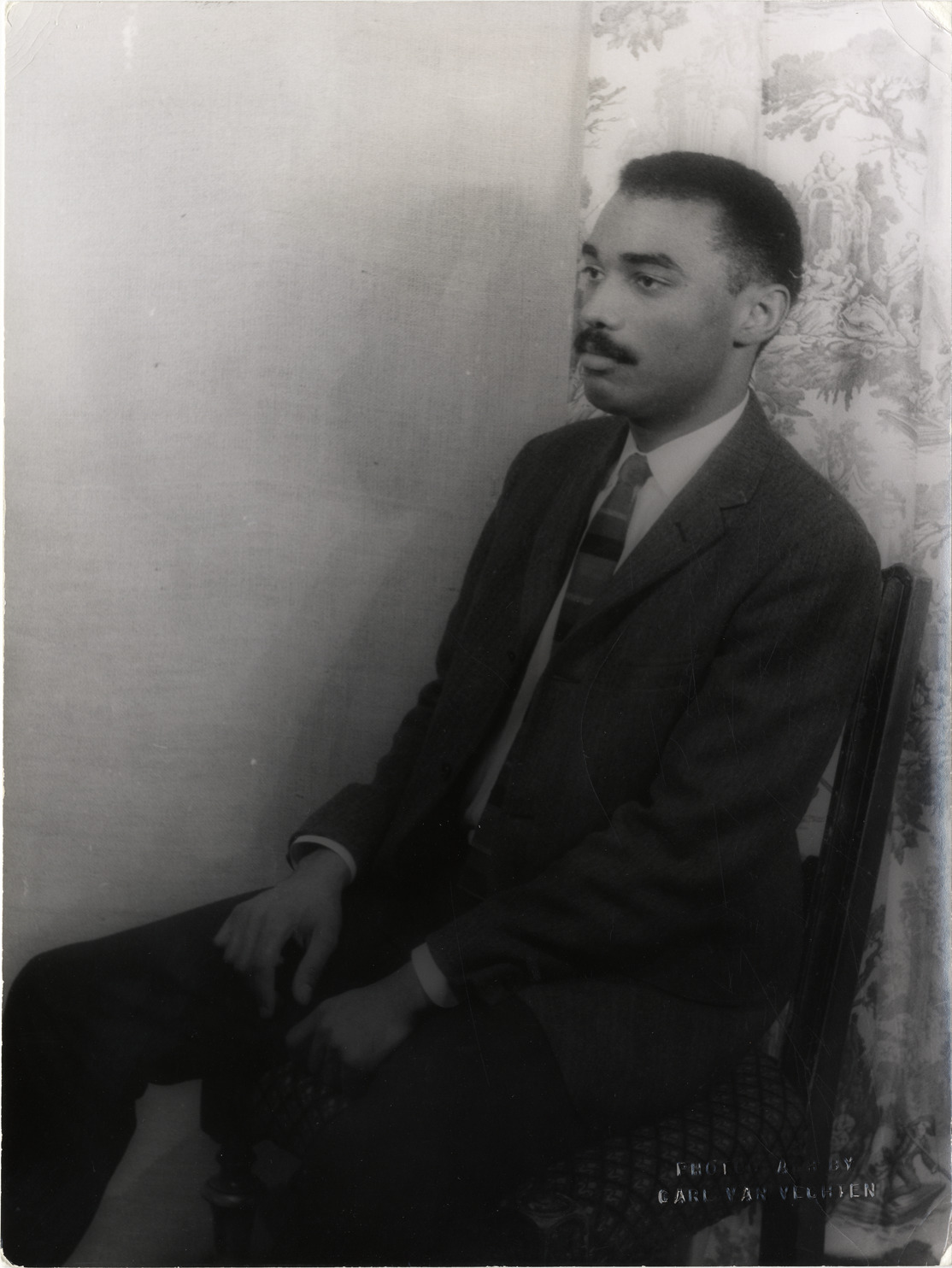 Portrait of composer John Daniels Carter. Embossed on front: "Photograph by Carl Van Vechten." Stamped on back: "Photograph by Carl Van Vechten. 146 Central Park West. Cannot be reproduced without permission." Handwritten on back: "John Carter. VI QQ 2. November 18, 1958."