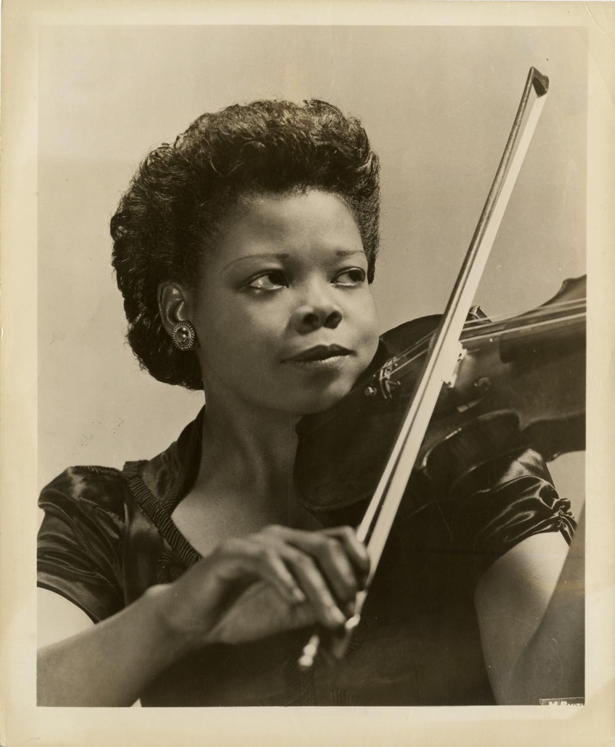 Favorite this☆ Penelope Johnson Description: Portrait of violinist Penelope Johnson. Handwritten on back: "Johnson, Penelope." Details Resource ID: hk002088 Subject: Johnson, Penelope, 1916-1979 African American women musicians Women violinists Photographic prints Date Issued: Unknown year Format: 1 photographic print ; 10 x 8 in. Member of: E. Azalia Hackley Collection Filing Location: Biography--Johnson, Penelope Rights: Physical rights are retained by DPL. Copyright is retained in accordance with U.S. copyright laws.