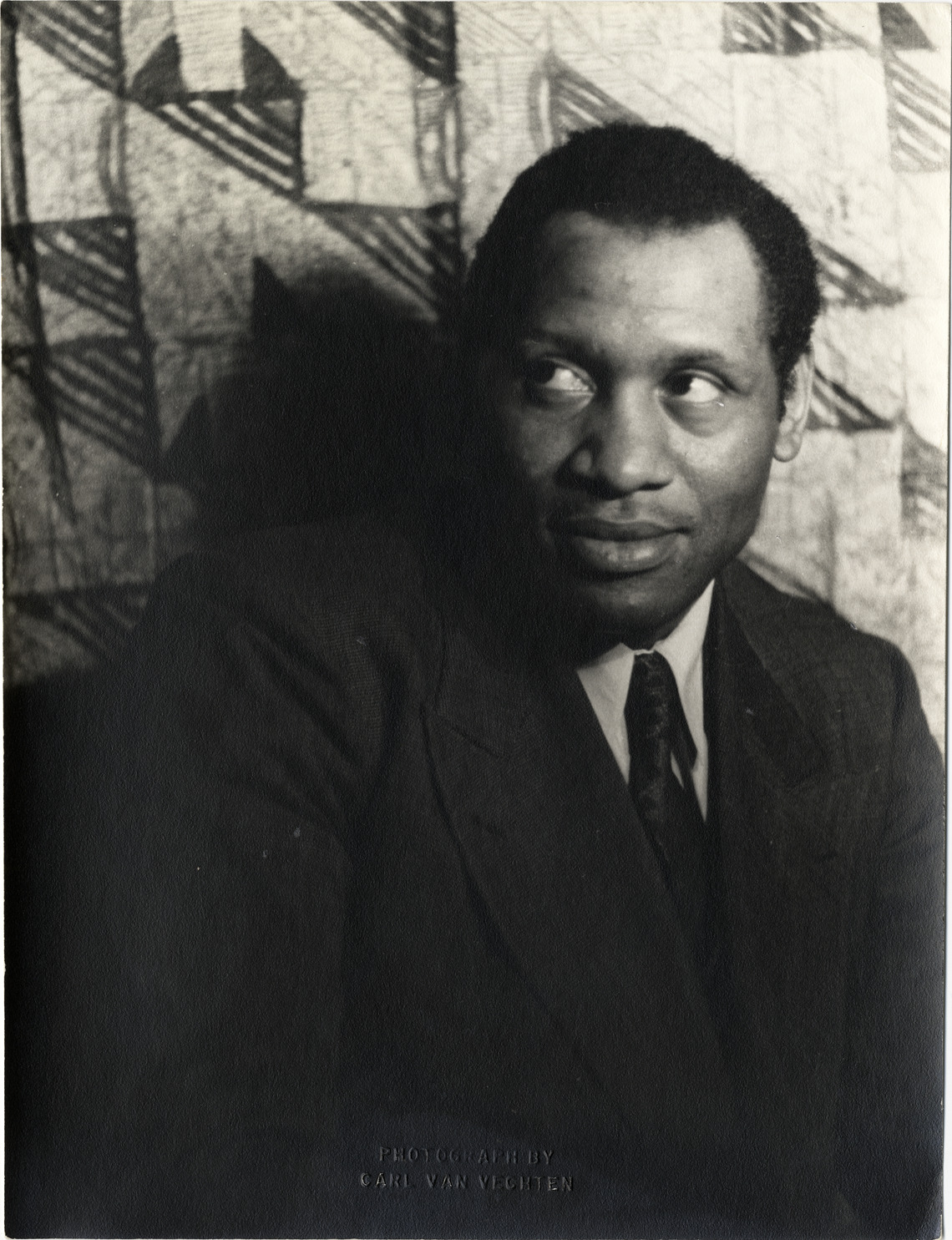 Portrait of actor and singer Paul Robeson. Embossed on front: "Photograph by Carl Van Vechten." Stamped on back: "Photograph by Carl Van Vechten. 146 Central Park West. Cannot be reproduced without permission." Handwritten on back: "Paul Robeson. XLII I 8. 10 Jan. 1936."