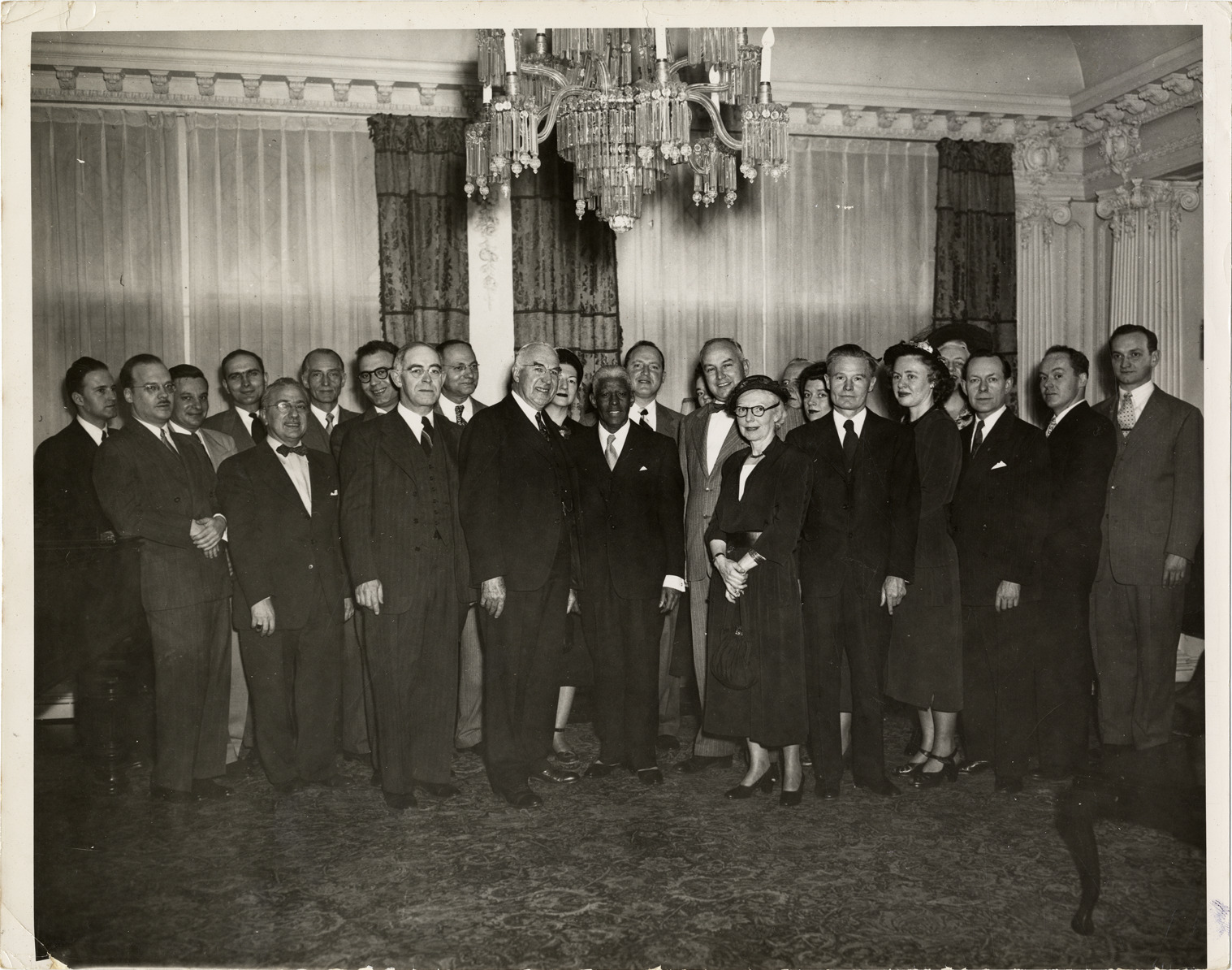 Roland Hayes posing with trustees and faculty members, Boston University, College of Music