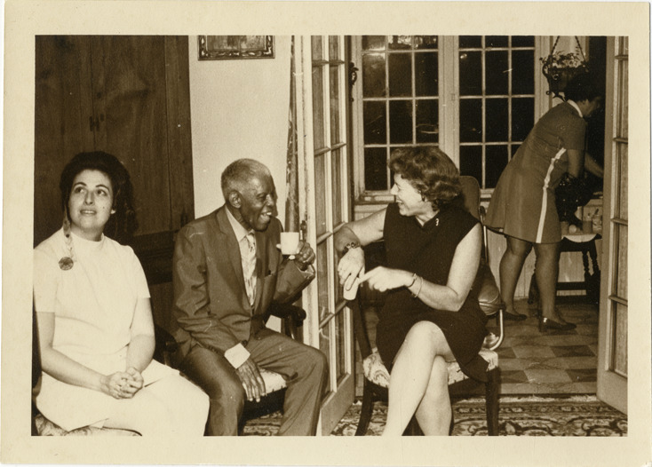 Roland Hayes speaking with two unidentified women