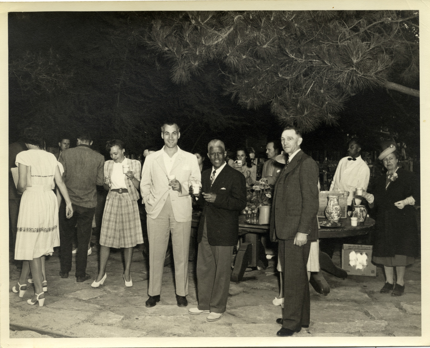 Favorite this☆ Roland Hayes posing with two unidentified men at party Description: View of tenor Roland Hayes posing outdoors with two unidentified men at a party. Men and women in background; waiter stands behind table. Details Resource ID: hk002396 Subject: Hayes, Roland, 1887-1977 Hayes, Roland, 1887-1977--Friends and associates African American singers Photographic prints Date Issued: Unknown year Format: 1 photographic print ; 8 x 10 in. Member of: E. Azalia Hackley Collection Filing Location: MS/Hayes, Roland W.--Hayes, Roland--Friends and colleagues #9, Series 6: Photographs, Box 2, File 4 Rights: Physical rights are retained by DPL. Copyright is retained in accordance with U.S. copyright laws.
