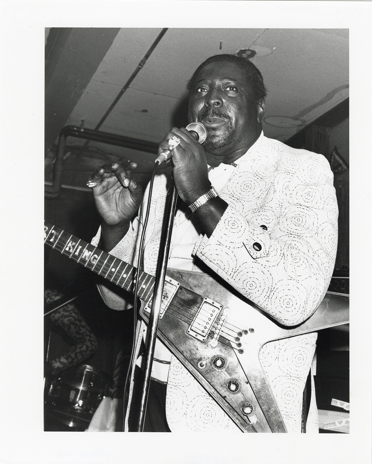 Favorite this☆ Albert King Description: View of blues musician Albert King, playing guitar. Stamped on back: "Charlyn Zlotnik, photography. 1401 G. Lorrain, Austin, TX 78703, 512-474-1028. All rights reserved." Details Resource ID: hk003727 Creator: Zlotnik, Charlyn Subject: King, Albert, 1923-1992 Blues musicians African American singers African American guitarists Photographers--Texas--Austin Photographic prints Date Issued: 1975 (year approximate) Format: 1 photographic print ; 10 x 8 in. Member of: E. Azalia Hackley Collection Filing Location: Biography--King, Albert Rights: Physical rights are retained by DPL. Copyright is retained in accordance with U.S. copyright laws.