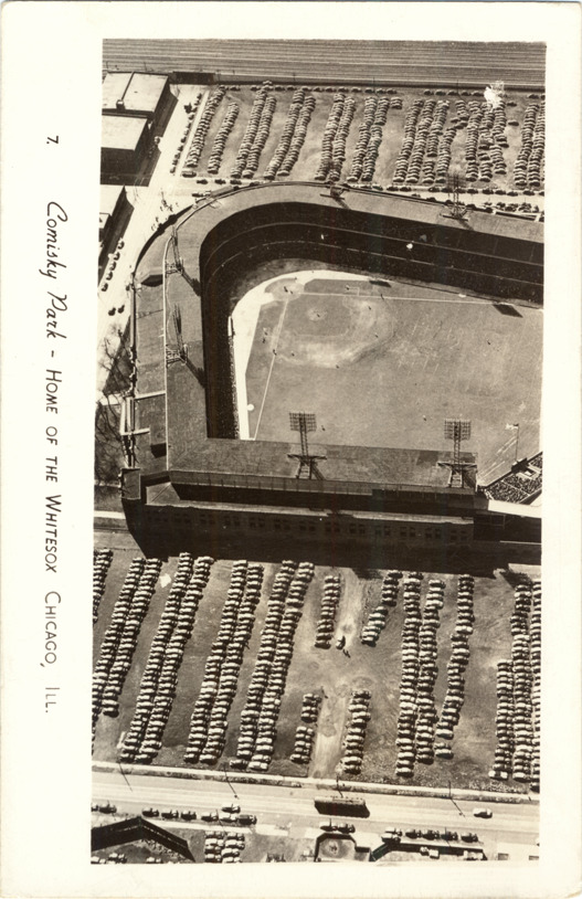 Favorite this☆ Aerial view of Comiskey Park Description: Bird's-eye view of Comiskey Park in Chicago, Illinois. Automobiles parked in lots adjacent to ballpark. Printed on front: "7., Comisky [sic] Park, home of the Whitesox [sic], Chicago, Ill." Printed on back: "Grogan Photo Company, Danville, Ill." Details Resource ID: hr000259 Subject: Comiskey Park (Chicago, Ill.) Photographic prints Postcards Publisher: Grogan Photo Company Date Issued: Unknown year Format: 1 postcard ; 3.5 x 5.5 in. Member of: Ernie Harwell Sports Collection Filing Location: Postcards-Ballparks-Comiskey Park Rights: Physical rights are retained by DPL. Copyright is retained in accordance with U.S. copyright laws.
