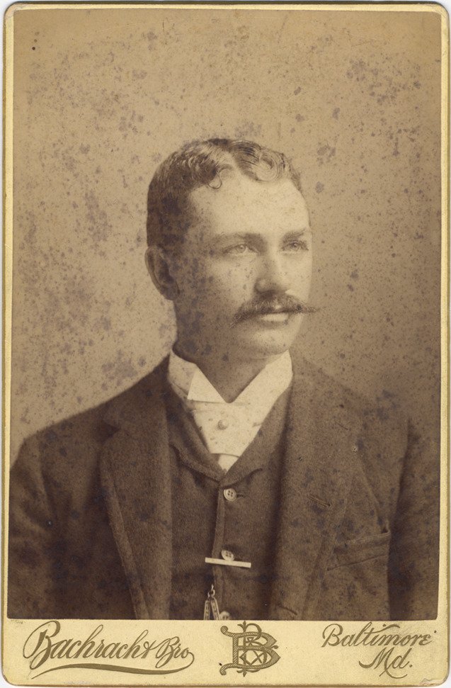 Portrait of man wearing a suit, possibly a baseball player. Printed on card front: "Bachrach & Bro., Baltimore, Md."