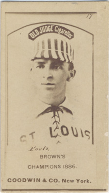 Favorite this☆ Dave Foutz Description: Head-and-shoulders portrait of Dave Foutz, of the St. Louis Browns. Posed wearing uniform. Old Judge (N172) series. Printed on front: "17. Foutz. Old Judge cigarettes. Brown's. Champions 1886. Goodwin & Co. New York." Details Resource ID: hr000428 Subject: Foutz, Dave (David Luther), 1856-1897 Baseball players--Missouri--Saint Louis St. Louis Browns (Baseball team) Baseball cards Albumen prints Cigarette cards Publisher: Goodwin & Co. Date Issued: 1887 to 1890 Format: 1 cigarette card ; 2.75 x 1.5 in. Member of: Ernie Harwell Sports Collection Filing Location: Cigarette cards-Goodwin & Co.-Old Judge (N172)-1887-1890-Foutz, Dave Rights: Physical rights are retained by DPL. Copyright is retained in accordance with U.S. copyright laws.