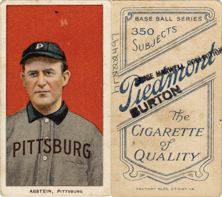 Portrait of Bill Abstein, baseball player for the Pittsburgh Pirates. White Borders (T206) series. Printed on front: "Abstein, Pittsburgh." Printed on back: "Piedmont, the cigarette of quality. Base ball series, 350 subjects. Factory no. 25, 2d. dist. Va."