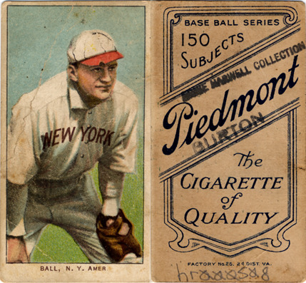 Portrait of Neal Ball, baseball player for the New York Highlanders. White Borders (T206) series. Printed on front: "Ball, N.Y. Amer." Printed on back: "Piedmont, the cigarette of quality. Base ball series, 150 subjects. Factory no. 25, 2d. dist. Va."