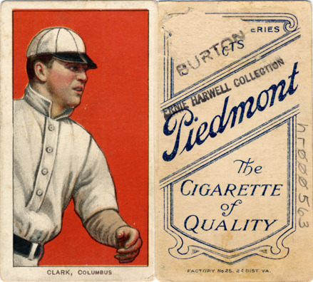 Favorite this☆ Josh Clarke Description: Portrait of baseball player Josh Clarke. White Borders (T206) series. Printed on front: "Clark [sic], Columbus." Printed on back: "Piedmont, the cigarette of quality. [Base ball s]eries. Factory no. 25, 2d. dist. Va." Details Resource ID: hr000563 Subject: Clarke, Josh (Joshua Baldwin), 1879-1962 Baseball players--Ohio--Columbus Minor league baseball--Ohio--Columbus Baseball cards Cigarette cards Publisher: American Tobacco Company Date Issued: 1909 to 1911 Format: 1 cigarette card : col. ; 2.75 x 1.5 in. Member of: Ernie Harwell Sports Collection Filing Location: Cigarette cards-American Tobacco Company-White Borders (T206)-1909-1911-Clarke, Josh Rights: Physical rights are retained by DPL. Copyright is retained in accordance with U.S. copyright laws.