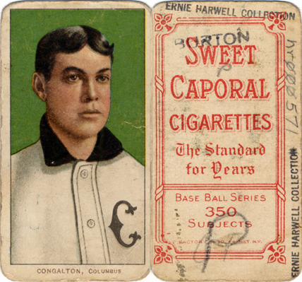 Portrait of Bunk Congalton, baseball player for the Columbus Senators. White Borders (T206) series. Printed on front: "Congalton, Columbus." Printed on back: "Sweet Caporal cigarettes, the standard for years. Base ball series, 350 subjects. Factory no. 30, 2d. dist. N.Y."